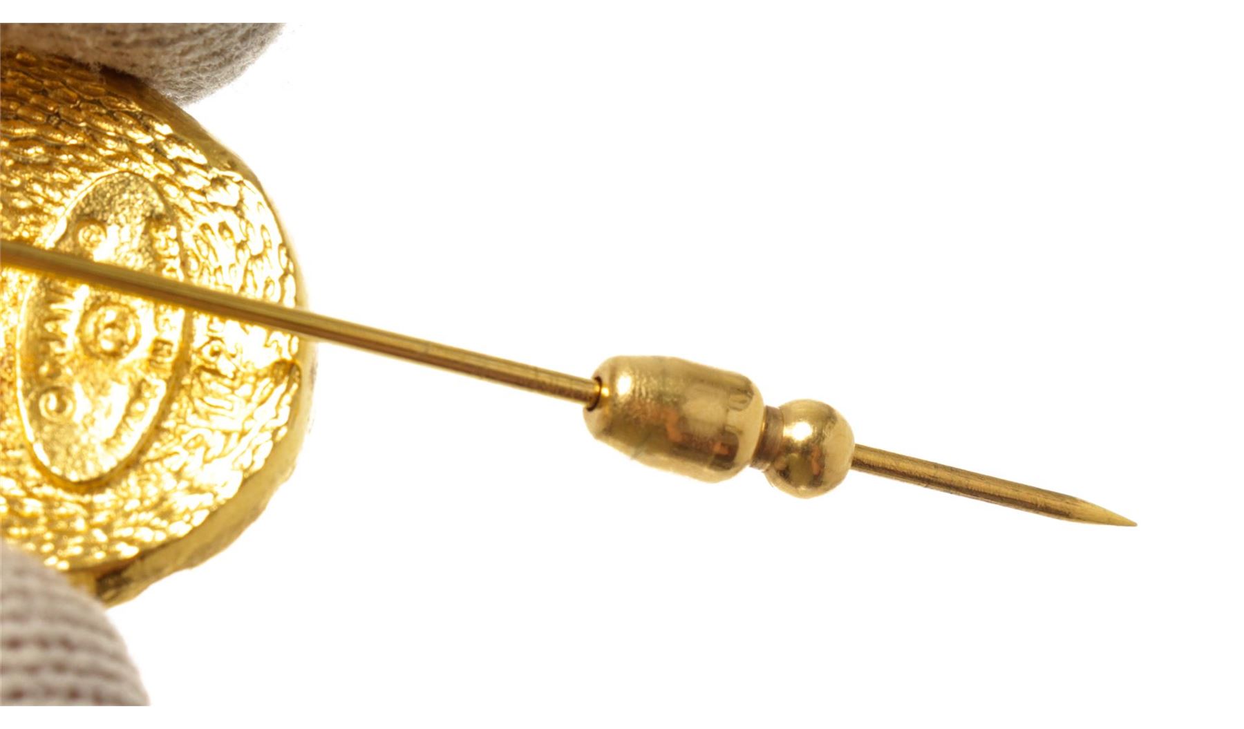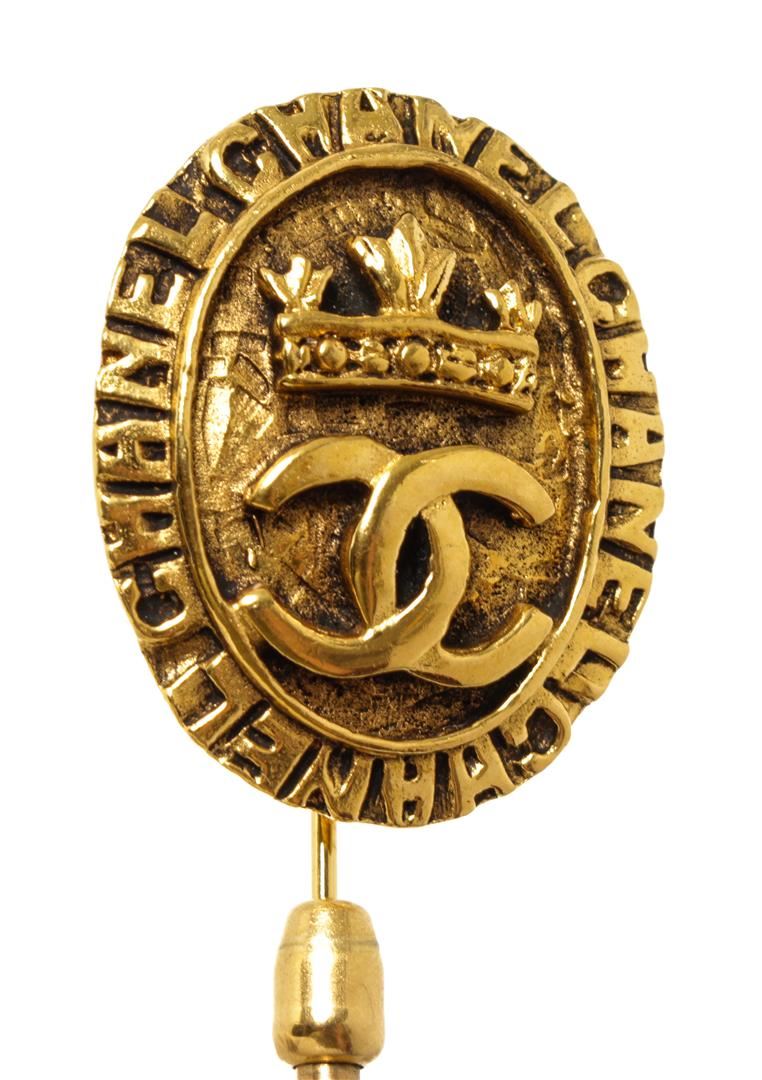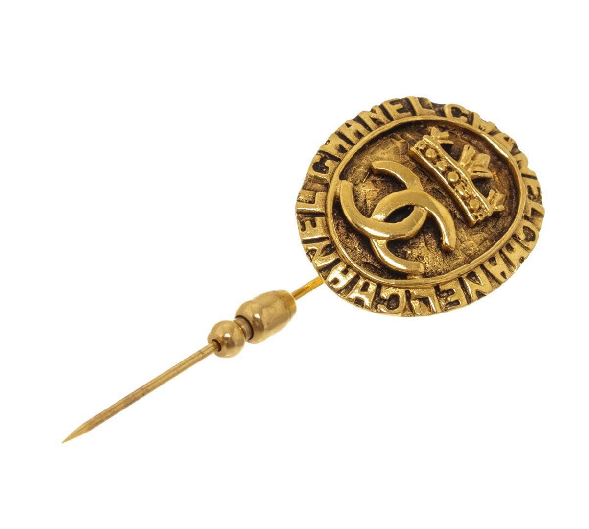 Chanel Gold-Plated Vintage CC Coin Medallion Brooch. All available information is listed in the description and shown in the photos. Chanel Gold-Plated Vintage CC Coin Medallion Brooch with gold-plated, pin closure Length 2", Width 2" / 5.08 x 5.08 Cm