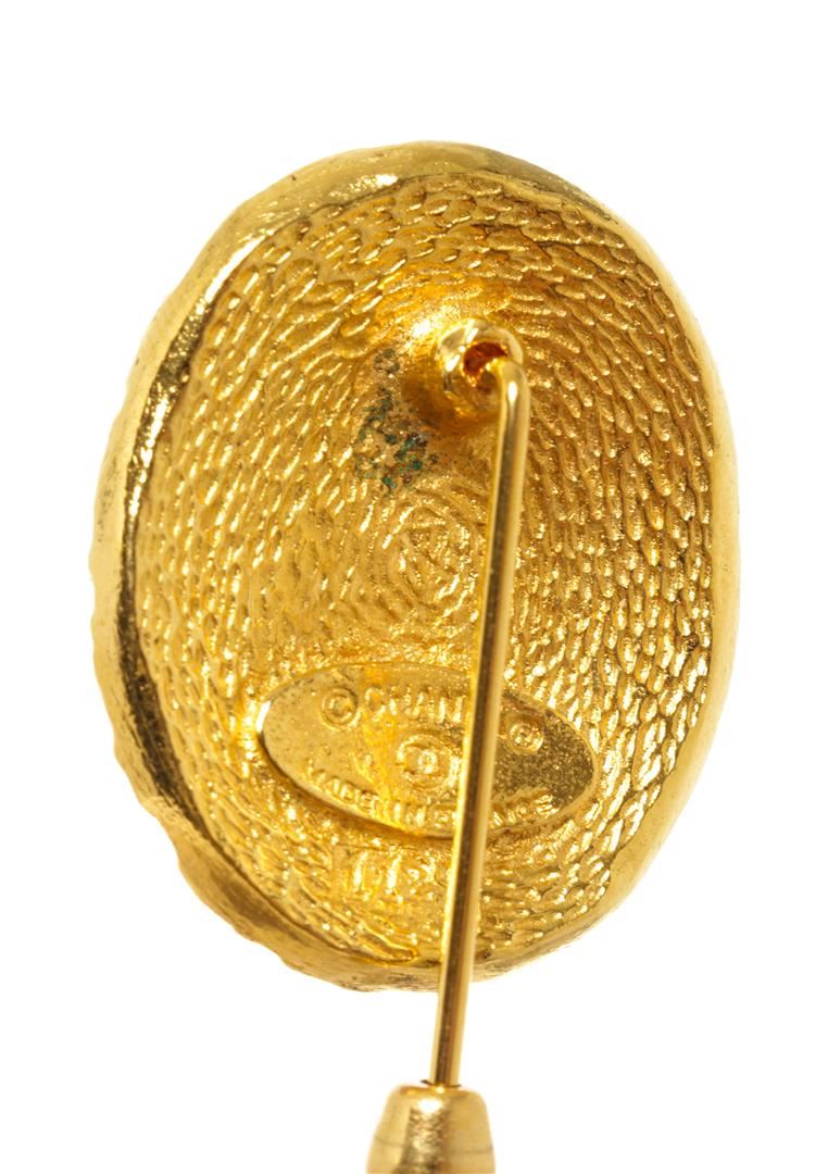 Chanel Gold-Plated Vintage CC Coin Medallion Brooch. All available information is listed in the description and shown in the photos. Chanel Gold-Plated Vintage CC Coin Medallion Brooch with gold-plated, pin closure Length 2", Width 2" / 5.08 x 5.08 Cm