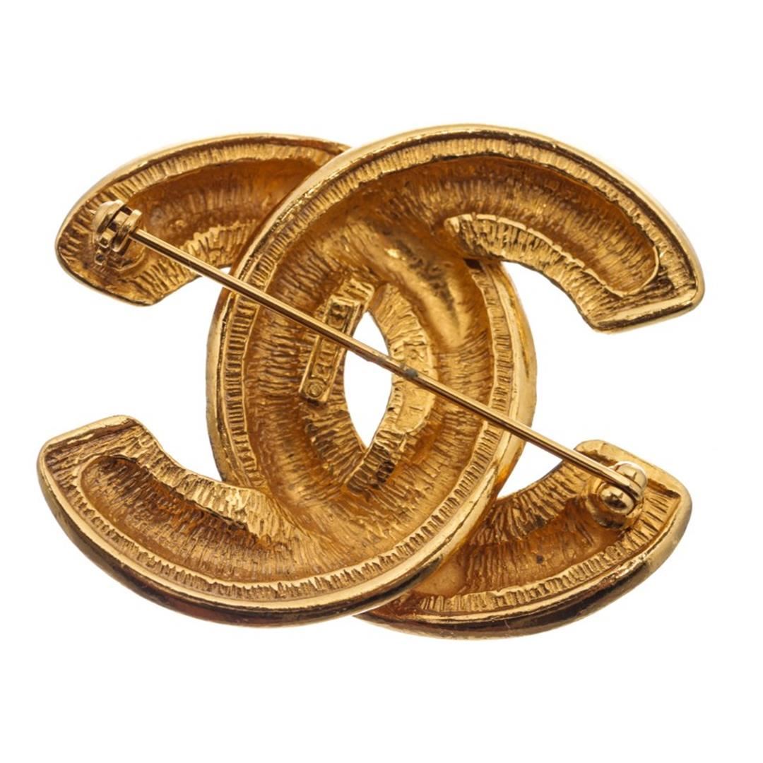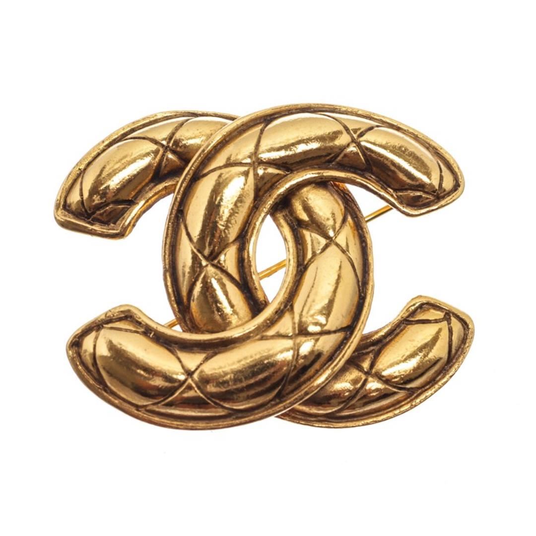 One Chanel Gold Quilted CC Logo Brooch. Pin backing medium vintage brooch.