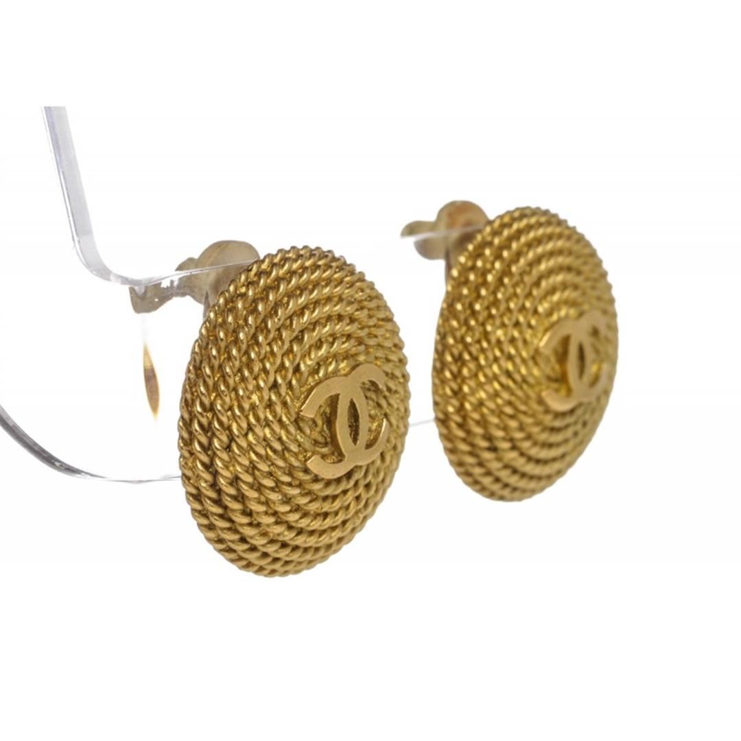 One pair of Chanel Gold Roped CC Logo Clip On Earrings 95P. Clip On Backing. From the 1995 Spring Collection.
