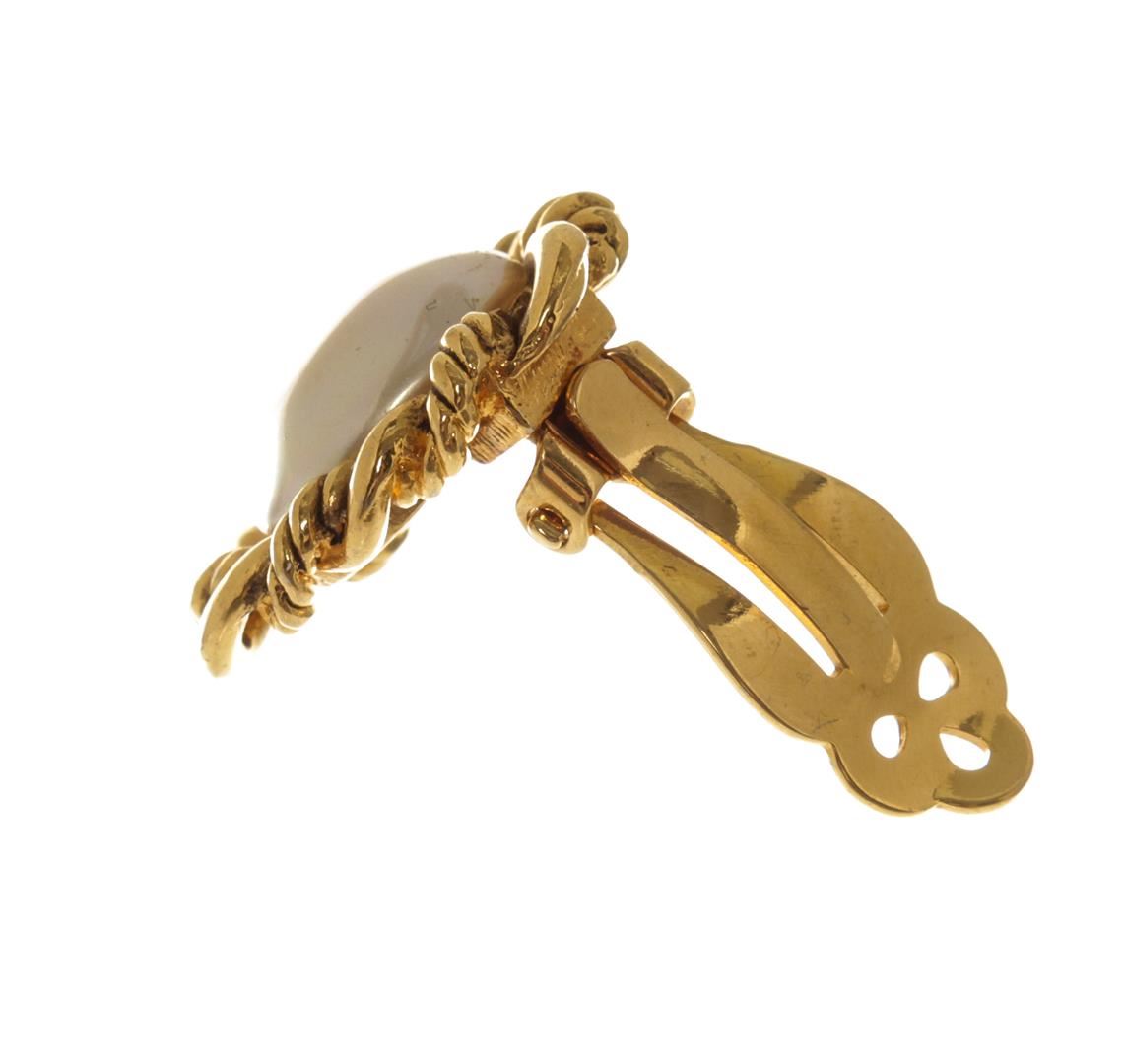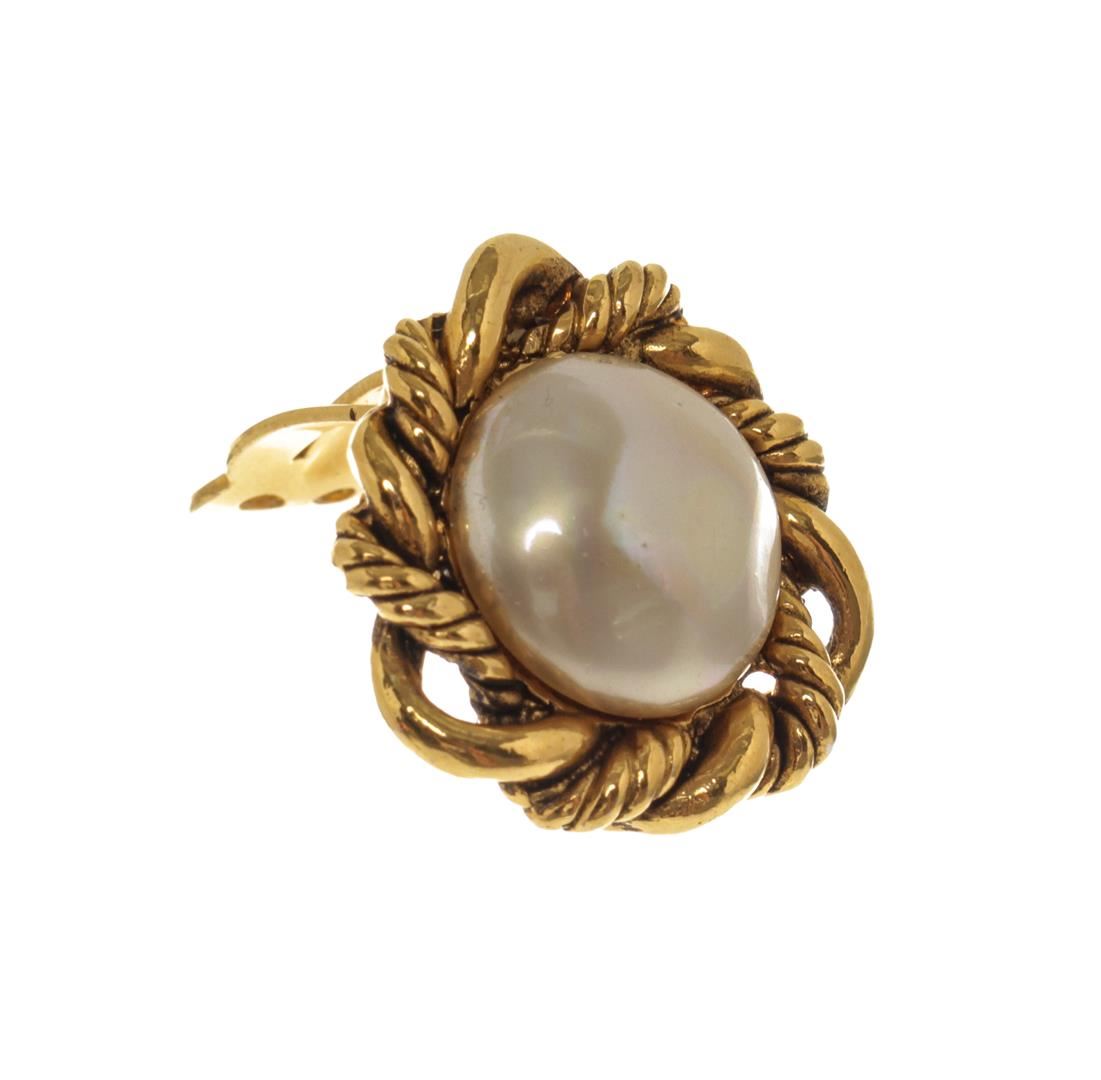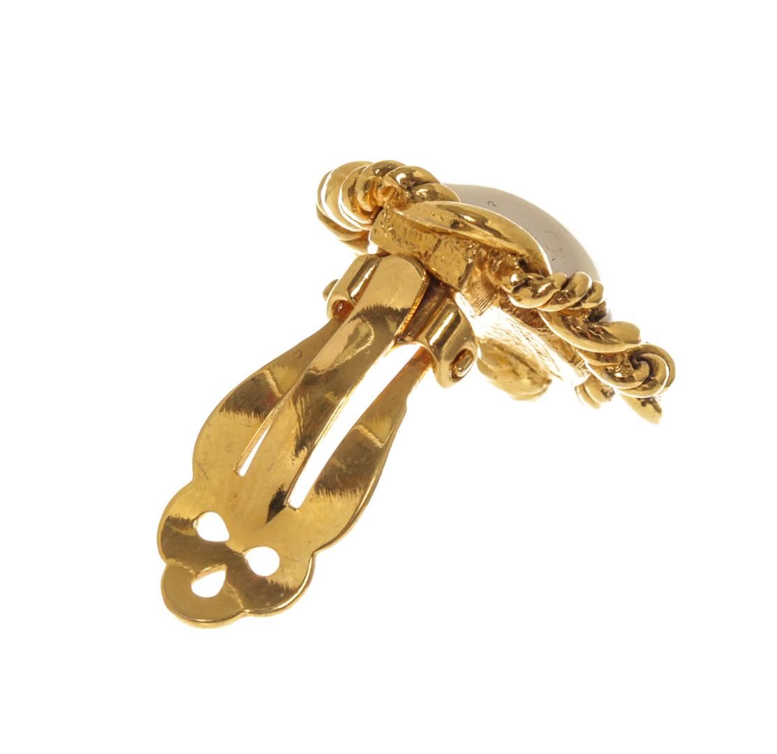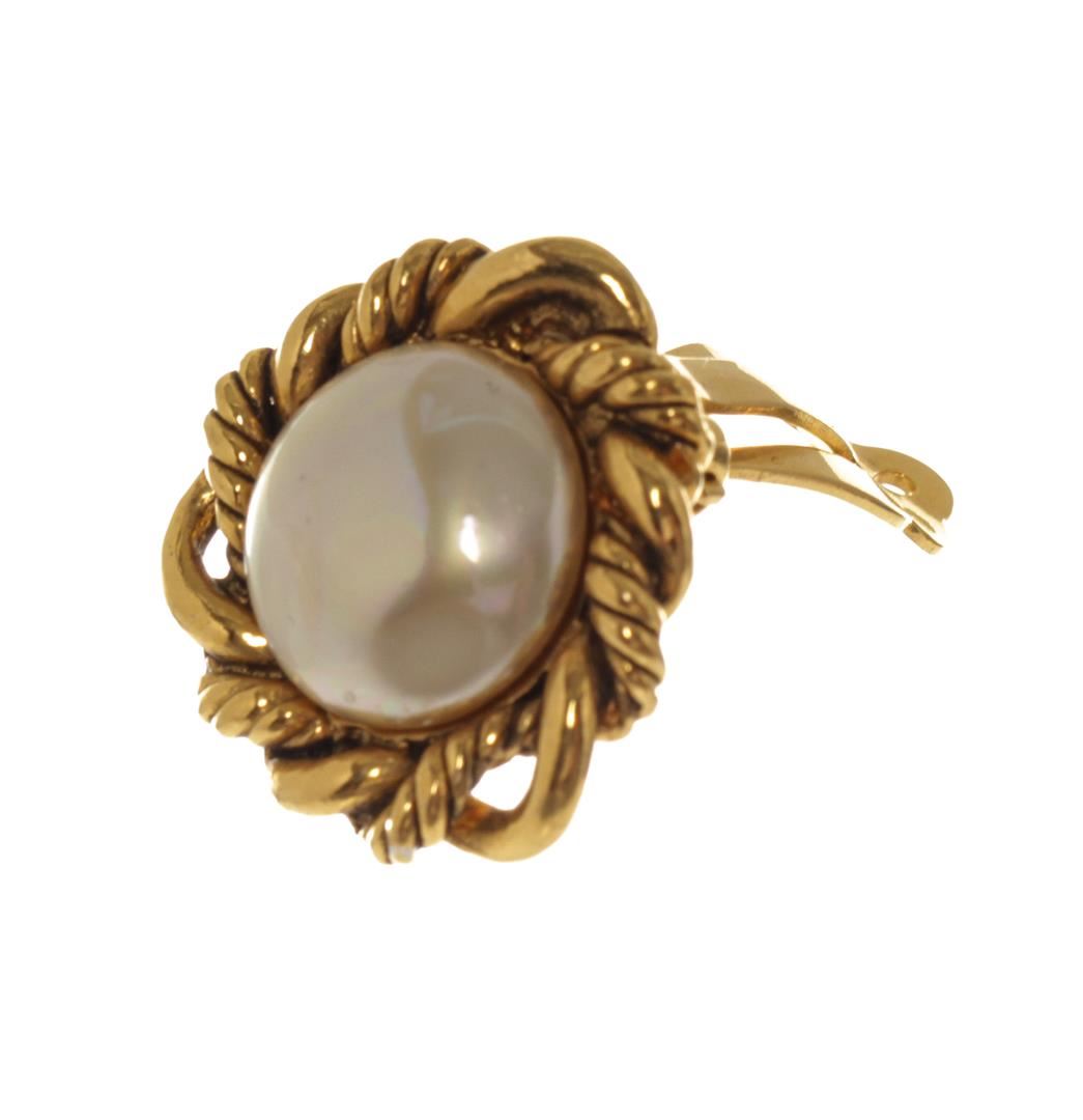 Chanel Gold Round Pearl Chain Earrings. All available information is listed in the description and shown in the photos. Chanel Round Pearl Chain Earrings with gold tone metal hardware, and faux pearls.