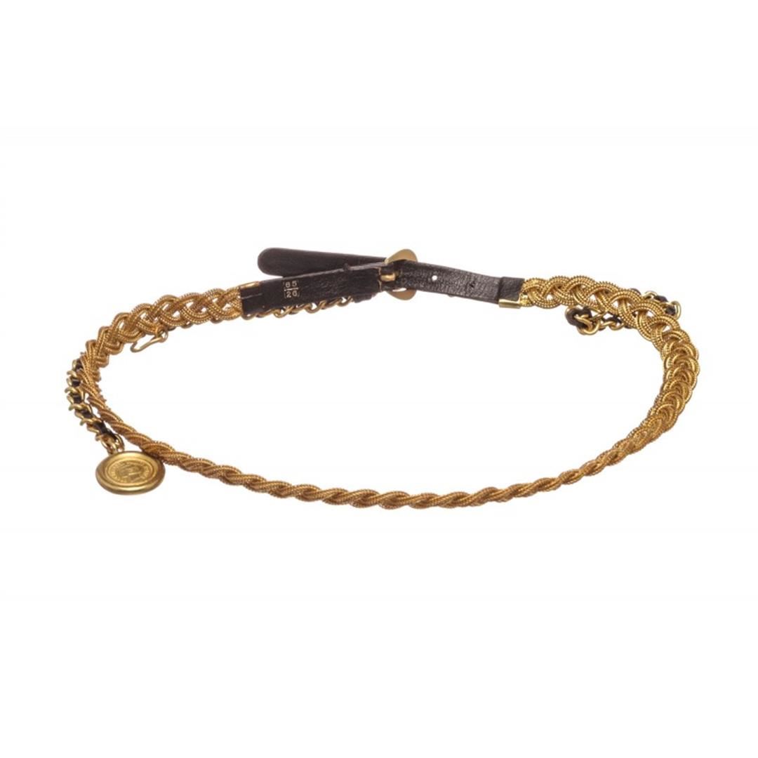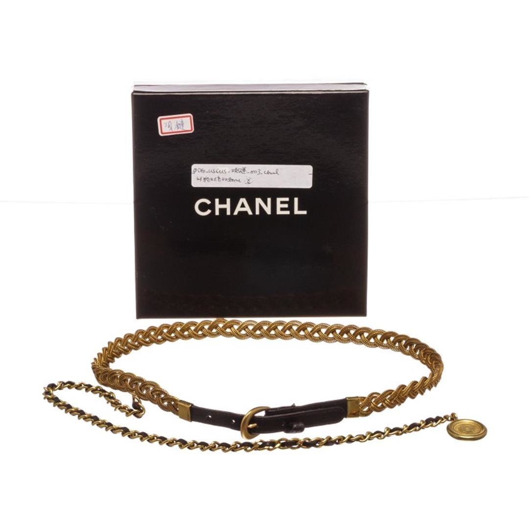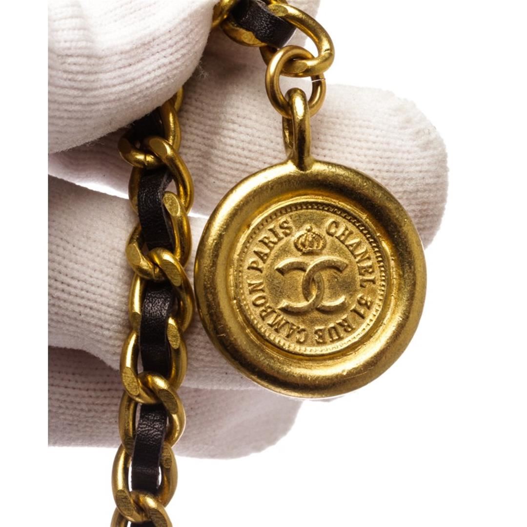 One Chanel Gold Woven 31 Rue Cambon Medallion Drop Belt 94A. Adjustable belt from the 1994 Fall collection.