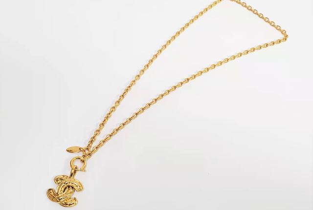 A superb and classic vintage Chanel gold-tone necklace which has a coveted large CC quilted pendant and a fashionably shorter oval-link chain. Completer with a spring-ring closure.