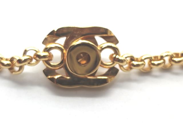 Chanel CC necklace features gold-tone hardware, ring pendant that has layered accent with interlocking CC logo at top, long chain that can be worn double and turn-lock closure.