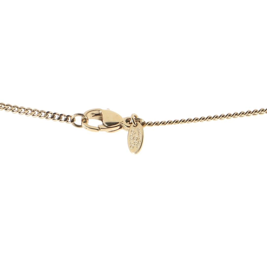 One Chanel Gold-tone Metal with Enamel and Faux Pearl Drop CC Pendant Necklace. Item is sold AS-IS. All available information is listed in the description and shown in the photo. Chanel CC Pendant Necklace features a black pendant with interlocking CC logo, faux pearl drop, gold-tone long chain and lobster clasp closure.