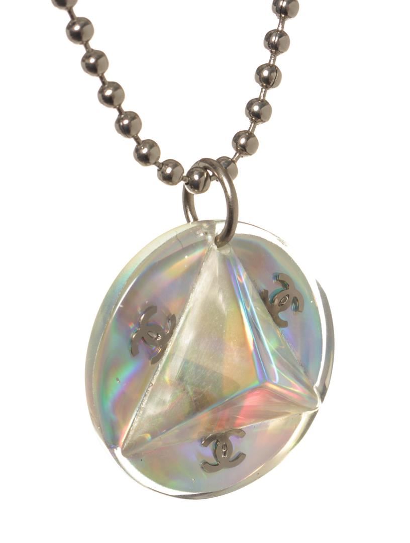Chanel Iridescent CC Gem Necklace. All available information is listed in the description and shown in the photos. Chanel Iridescent CC Gem Necklace with metal hardware, logo engraving, and made in France