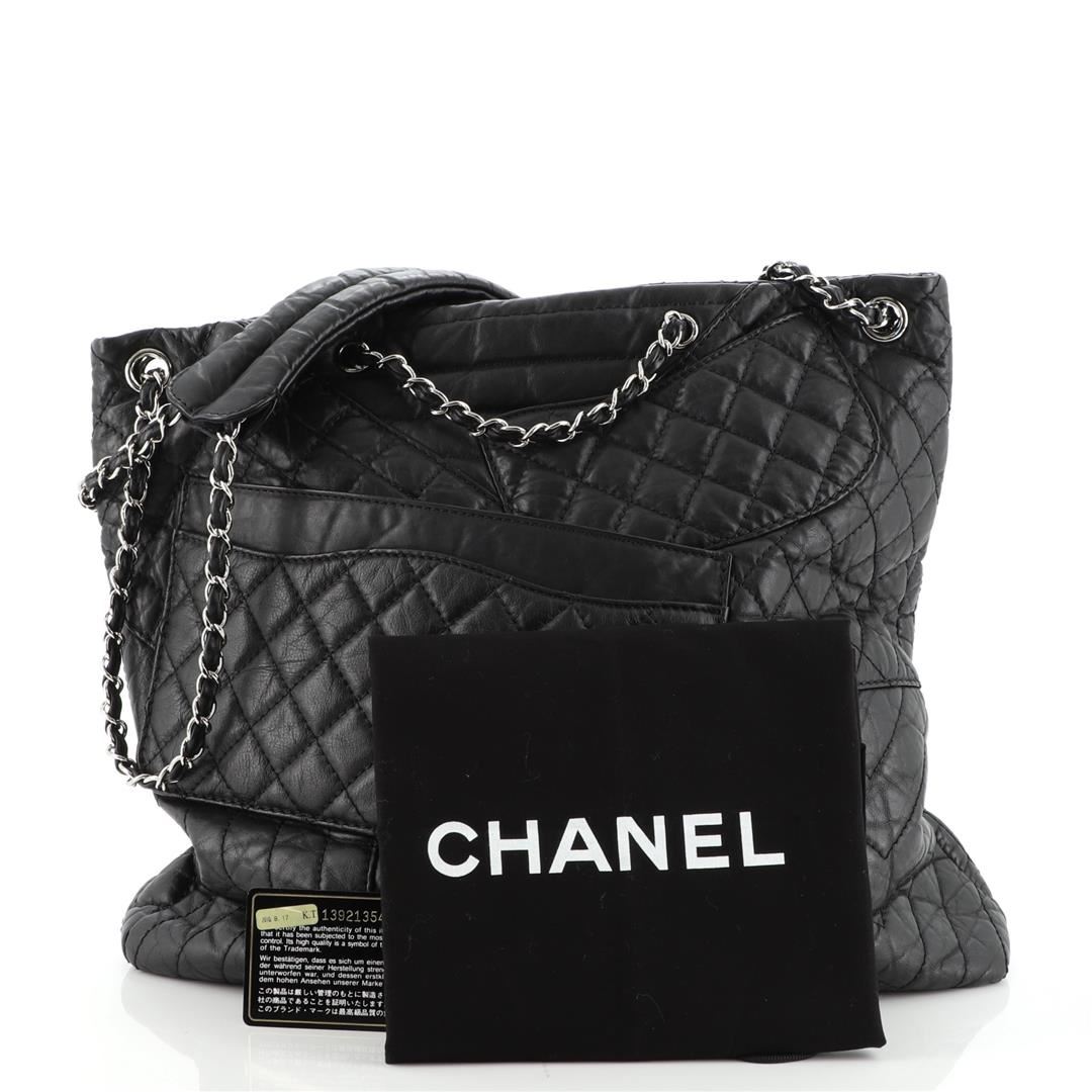 Chanel Karl's Fantasy Cabas Tote Quilted Leather Medium. Odor in interior. Wear on base corners and in interior, creasing on exterior, scratches on hardware.