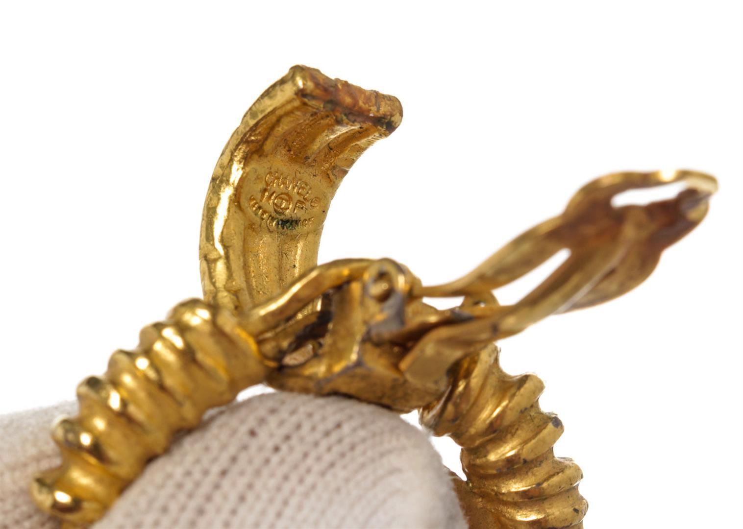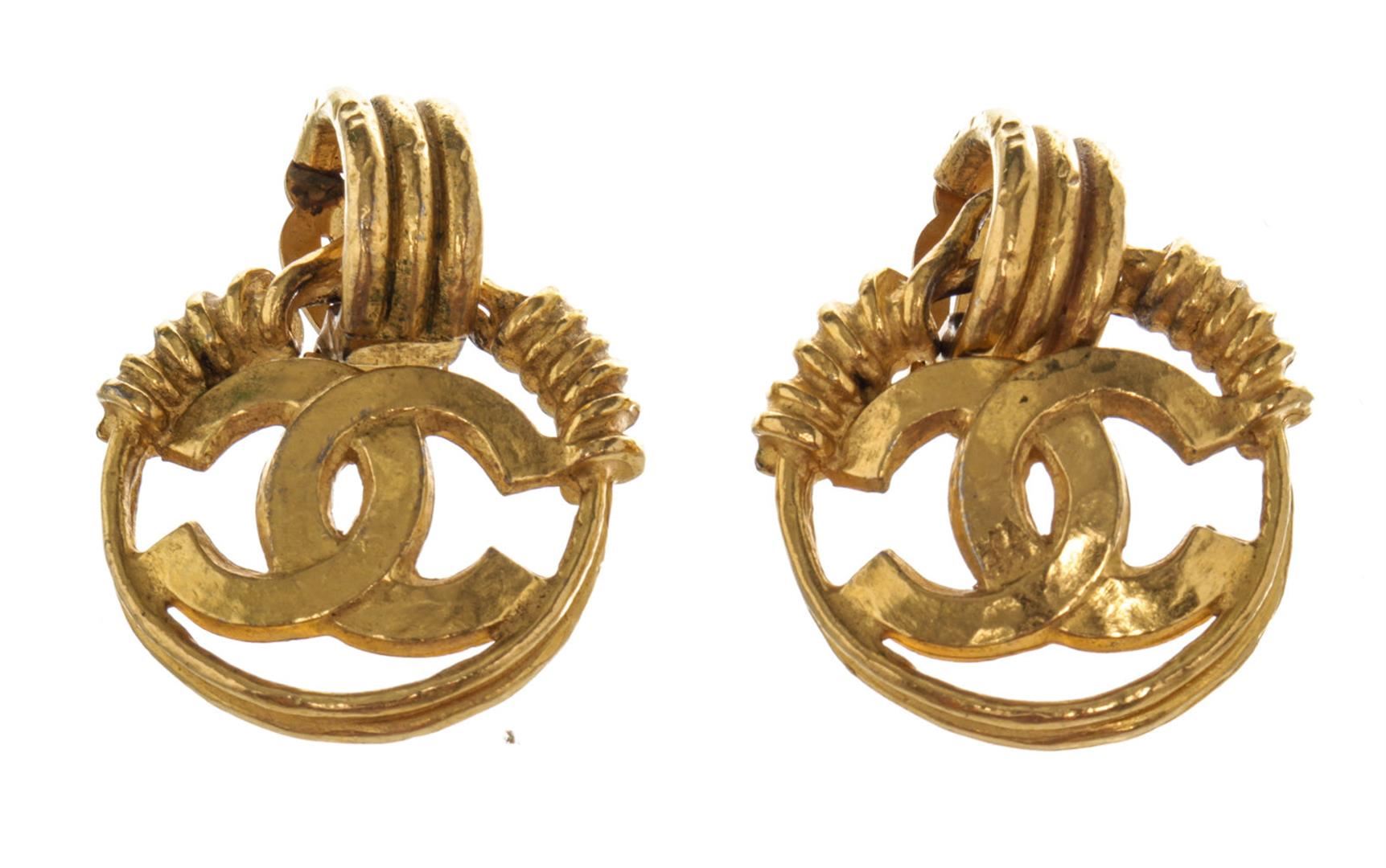 One Chanel Large CC Braided Earrings. Item is sold AS-IS. All available information is listed in the description and shown in the photo. Chanel Gold Round CC Braided Earrings with gold-tone hardware and plug closure.