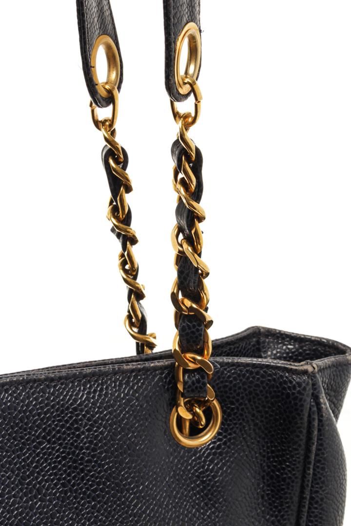 One Chanel Navy Caviar Leather Triple CC Shoulder Bag. Item is sold AS-IS. All available information is listed in the description and shown in the photo. Chanel Navy Caviar Leather Triple CC Shoulder Bag with caviar leather, this shoulder bag features tall leather shoulder straps with woven-in chain details, iconic gold CC logo hardware at its base, front pocket, and gold-tone hardware accents. Its top snap closure opens to a black leather interior with side zip pockets Height: 11 in (27.94 cm), Width: 12 in (30.48 cm), Depth: 3.5 in (8.89 cm)