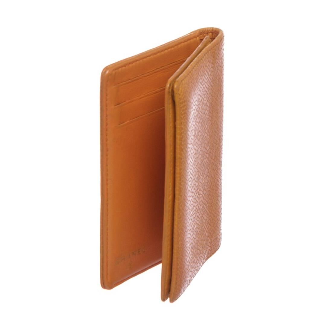 Overall flap bifold closure. Interior is leather lined and contains six credit cardip pockets. Exterior contains CC stitching on back.