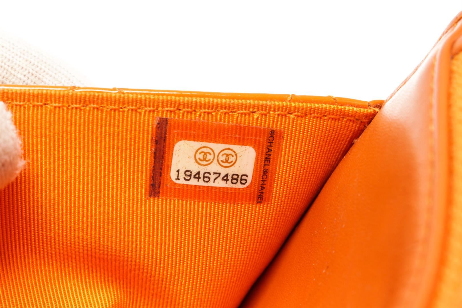 One Chanel Orange Patent Leather Woc Flap Shoulder Bag. Item is sold AS-IS. All available information is listed in the description and shown in the photo. Chanel Orange Patent Leather Woc Flap Shoulder Bag 19 x 12.3 x 3 cm / 7.48 x 4.84 x 1.18 CM