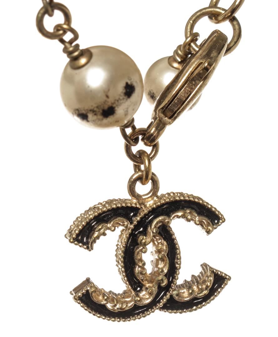 Chanel Pearl CC Logo Bracelet. All available information is listed in the description and shown in the photos. Chanel Pearl CC Logo Bracelet with faux pearls, metal hardware and logo. Made in Italy.