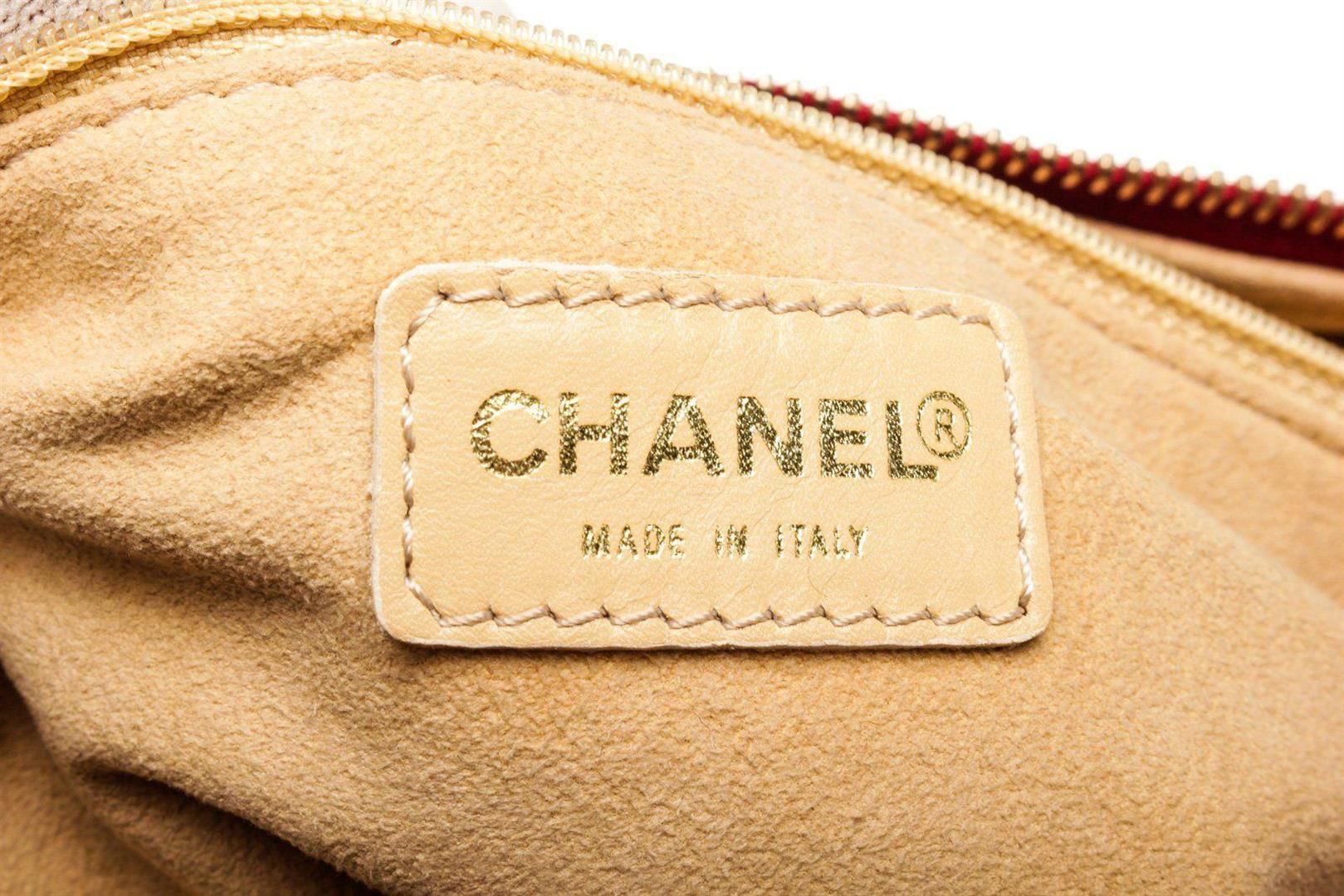 Chanel Red Caviar Leather Chocolate Bar Shoulder Bag with caviar leather, silver-tone hardware, leather trim, interior zip pockets, nylon lining, dual flat shoulder straps.
