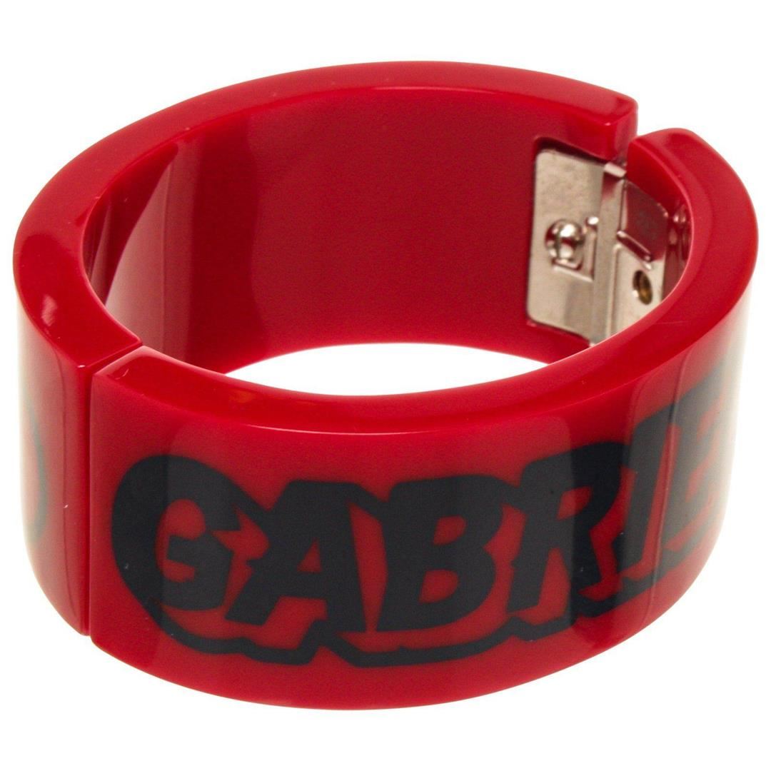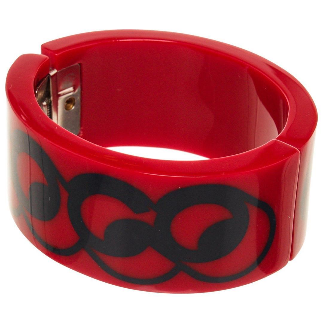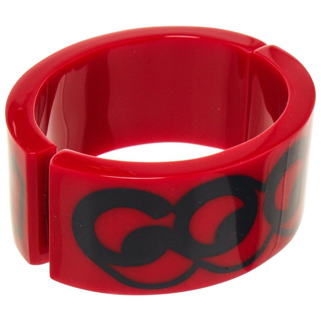 Chanel Red Coco Gabrielle Cham Bracelet with quilted design and 'CC' logo emblem.