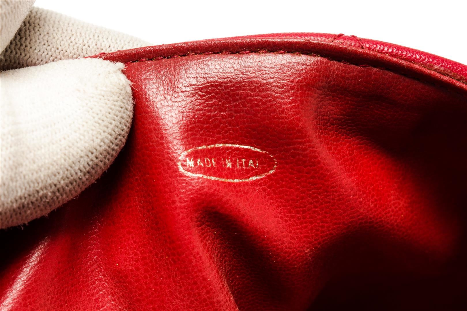 Chanel Red Leather Chain Buckle Flap Shoulder Bag. All available information is listed in the description and shown in the photos. Chanel red leather chain buckle flap shoulder bag with red quilted leather exterior, red leather lining, gold-tone hardware, a long chain with shoulder pad, buckle closure, one main compartment, and one interior zip pocket. There is a scratch on the front, peeling on the lining. Please refer to photos. Body is vintage and body has a chunky feel to it.