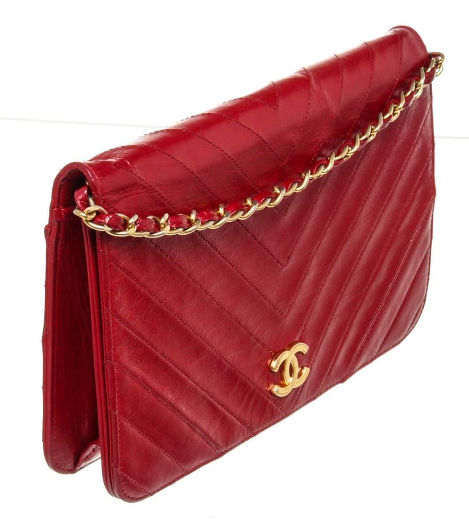 Chanel Red Leather Full Flap Shoulder Bag. All available information is listed in the description and shown in the photos. Chanel Red Leather Full Flap Shoulder Bag with leather, gold-tone hardware, interior slip pocket, chain shoulder strap and snap closure. Measurements: 9 in / 23 cm 2 in / 5 cm 6 in / 15 cm Condition: Pre-Owned Good
