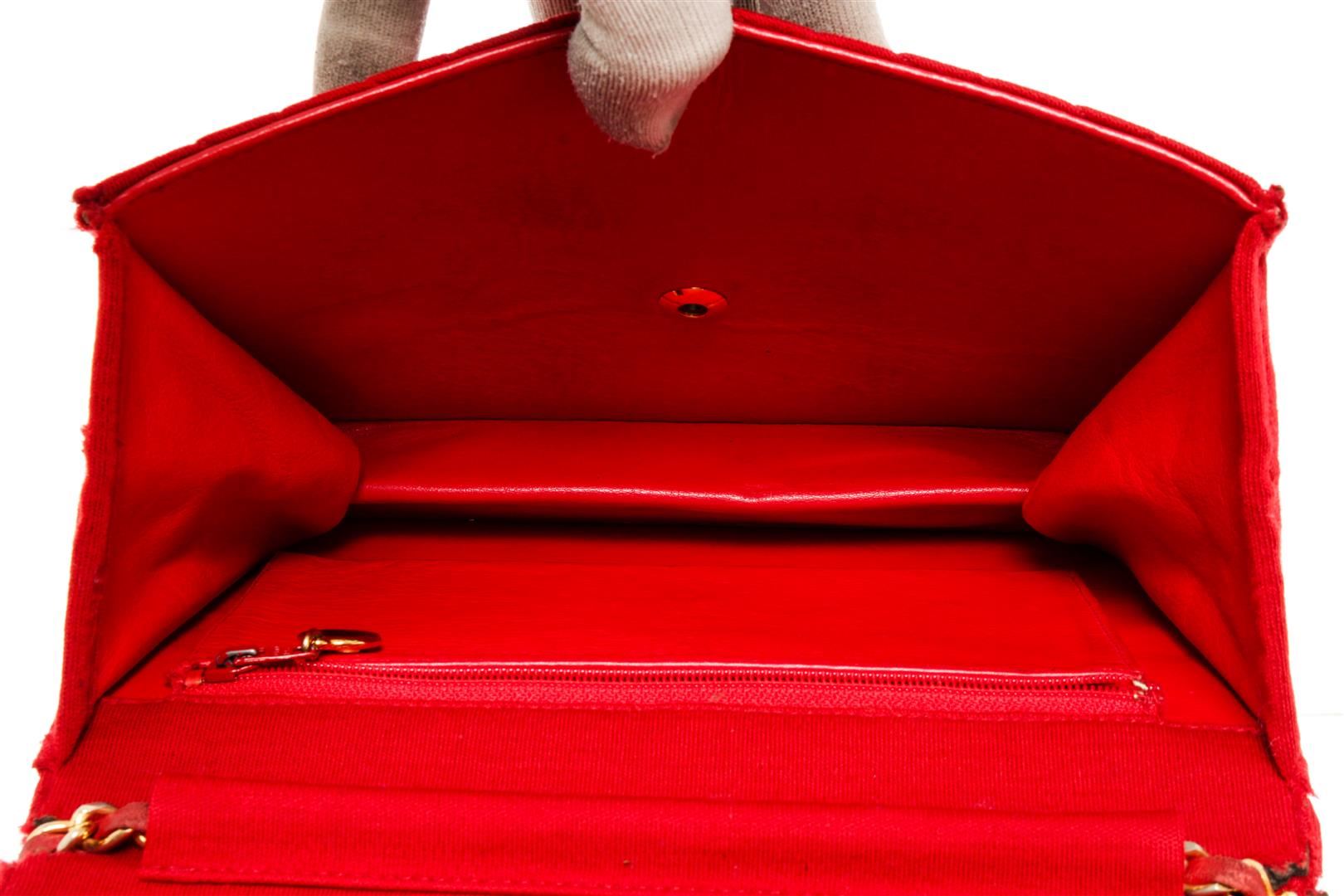 One Chanel Red Quilted Fabric Single Flap Bag. Item is sold AS-IS. All available information is listed in the description and shown in the photo. Chanel Red Quilted Fabric Single Flap Bag with gold-tone hardware, red leather lining, interior zip pocket, chain leather shoulder strap, and flap closure with CC turn-lock. .