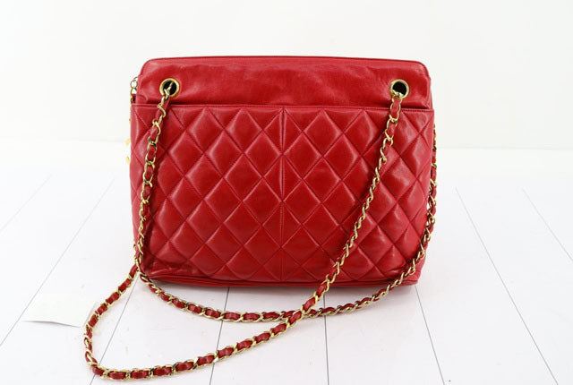 Chanel Red Quilted Lambskin Leather Matelasse Chain Shoulder Bag. All available information is listed in the description and shown in the photos. Chanel Matelasse Shoulder Bag in red quilted Lambskin leather, gold-tone hardware, two open pockets at front, chain shoulder strap intertwined with red leather, zipper closure at top main compartment and red leather interior lining with one zipped pocket inside. W21 × H12 × D5.5cm (W8.2" × H4.7" × D2.1") / Strap drop:57cm (22.4")