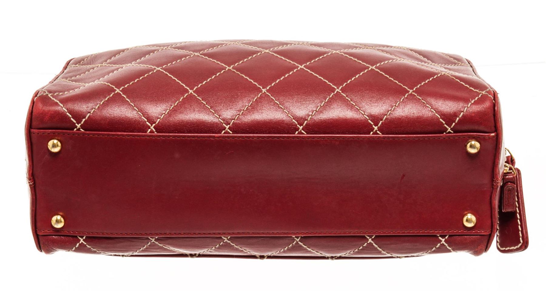 One Chanel Red Wild Stitch Tote Bag. Item is sold AS-IS. All available information is listed in the description and shown in the photo. Chanel red wild stitch tote bag with red leather exterior, contrasting white quilted stitching on the exterior, two top handles, gold-tone hardware, zip closure, red CC logo patterned fabric lining, and one interior zip pocket. There is some fading on the leather. Please refer to photos. Height: 9.45" Width: 4.73" Length: 13", Handle Drop: / 24 x 12 x 33 Cm