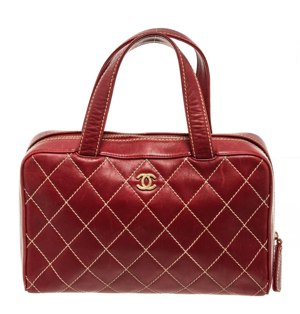 One Chanel Red Wild Stitch Tote Bag. Item is sold AS-IS. All available information is listed in the description and shown in the photo. Chanel red wild stitch tote bag with red leather exterior, contrasting white quilted stitching on the exterior, two top handles, gold-tone hardware, zip closure, red CC logo patterned fabric lining, and one interior zip pocket. There is some fading on the leather. Please refer to photos. Height: 9.45" Width: 4.73" Length: 13", Handle Drop: / 24 x 12 x 33 Cm