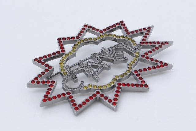 One Chanel Red and Yellow Ruthenium Crystal CC Brooch. Item is sold AS-IS. All available information is listed in the description and shown in the photo. This elegant Chanel brooch features a stunning array of red, yellow, white crystals, the CHANEL logo in stylized lettering and safety pin closure.
