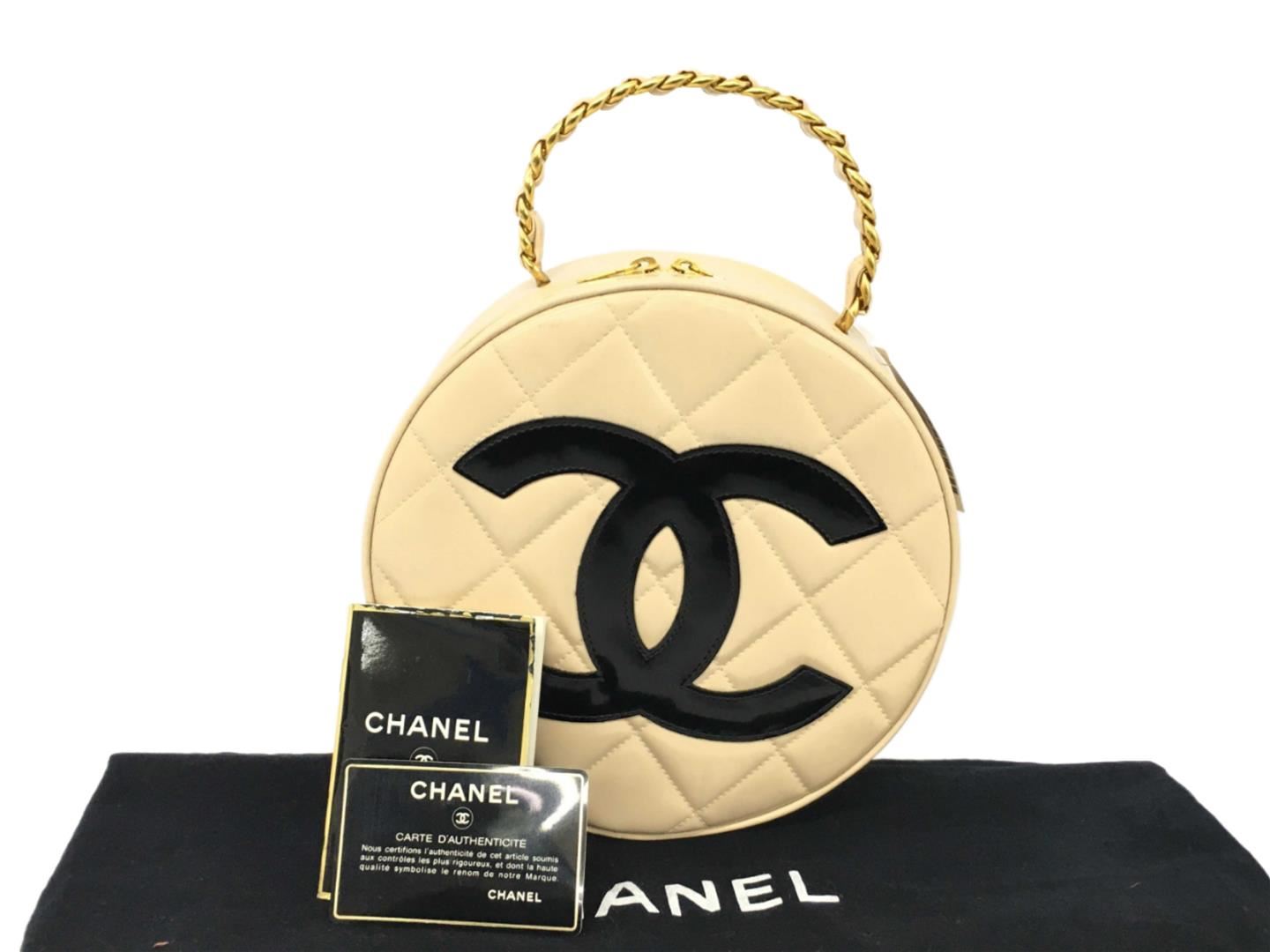 One Chanel Round CC Cosmetic Vanity Bag. Item is sold AS-IS. All available information is listed in the description and shown in the photo. Chanel Round CC Cosmetic Vanity Bag with top handle, gold tone hardware, zipper closure.