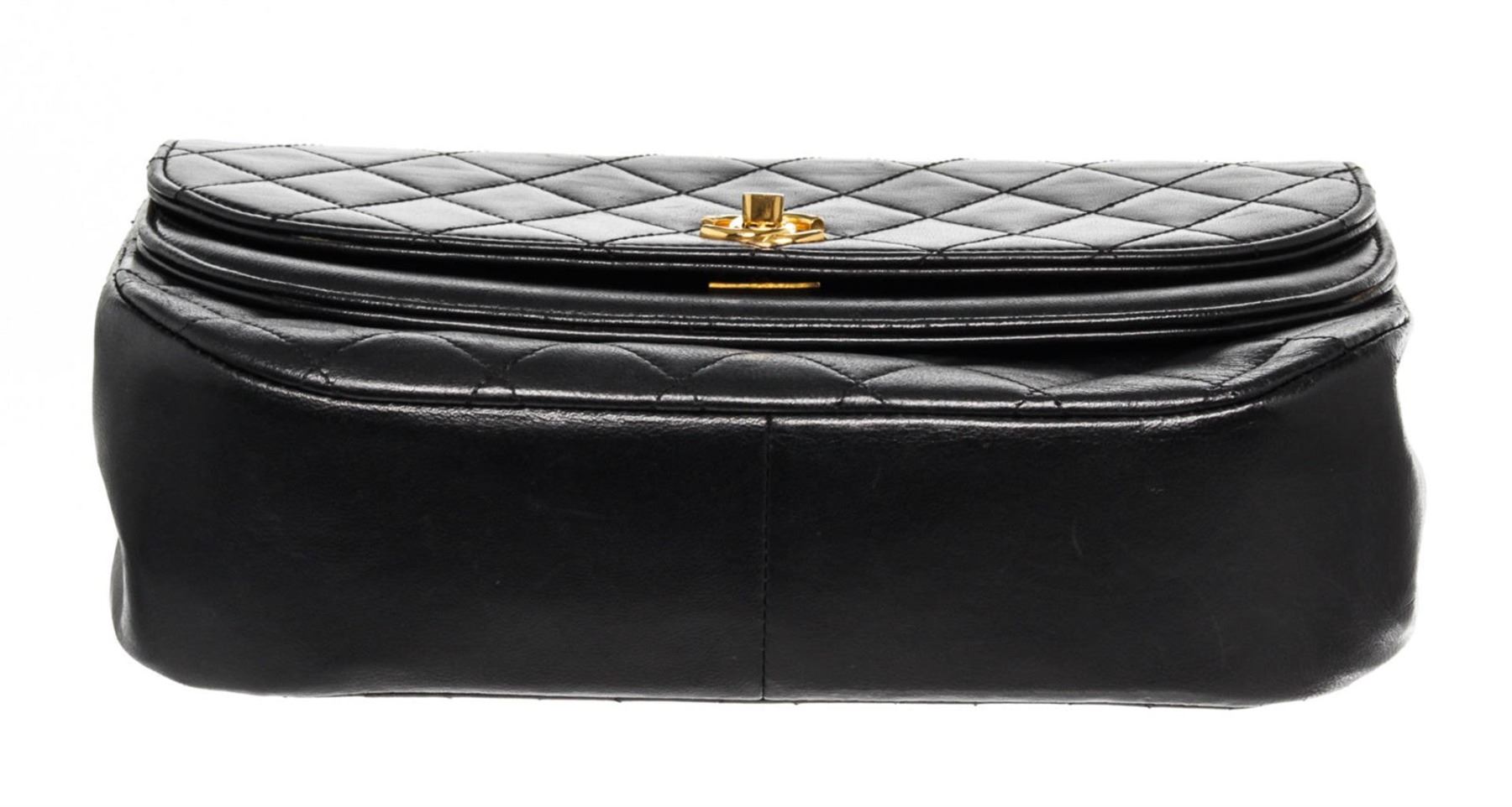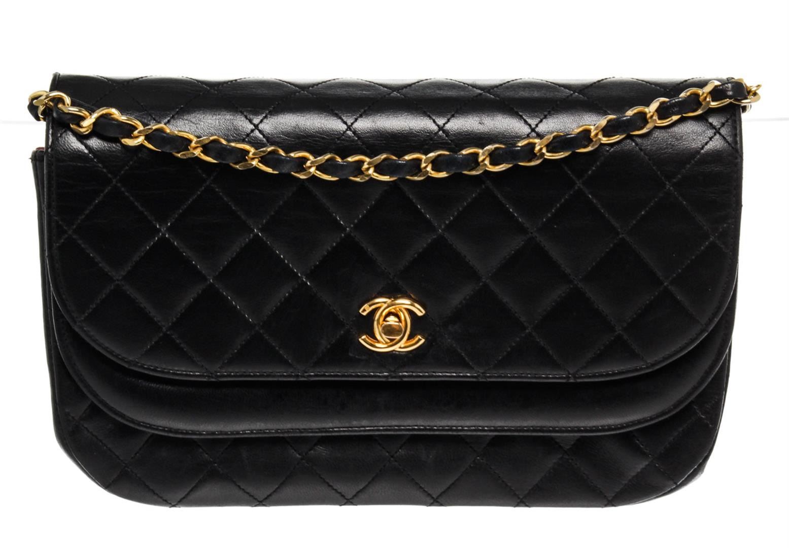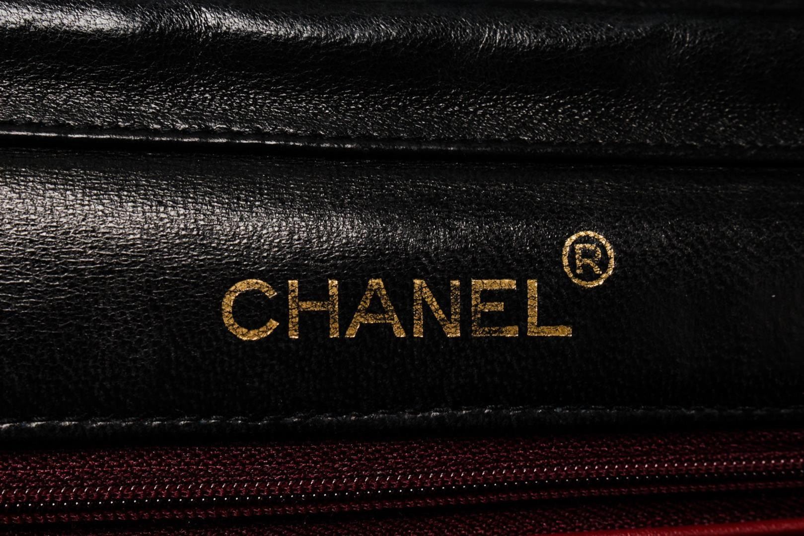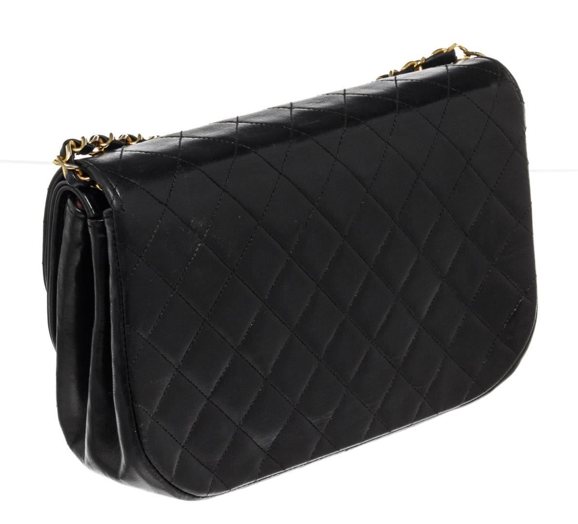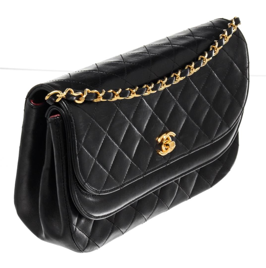 Chanel Round Flap Bag Shoulder Bag. Brand: Chanel, Style: Round Flap Bag, Type: Shoulder Bag, Exterior color: Black, Exterior material: Lambskin, Interior color: Red, Interior material: Fabric, Length: 9, Width: 3, Height: 7. Item is sold AS-IS and all in