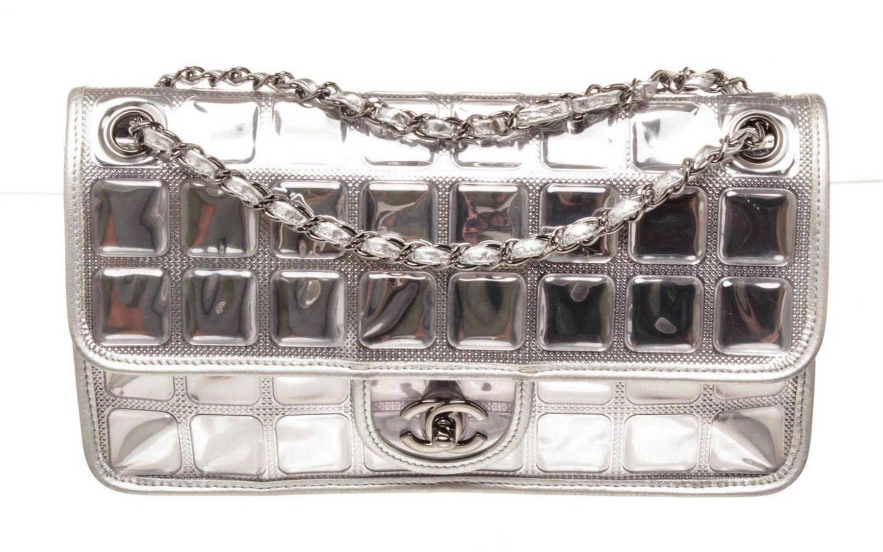 Chanel Sliver Ice Cube Flap Shoulder Bag. Chanel Sliver Ice Cube Flap Shoulder Bag with material leather, silver-tone hardware, interior slip pockets, chain shoulder strap and flap closure.