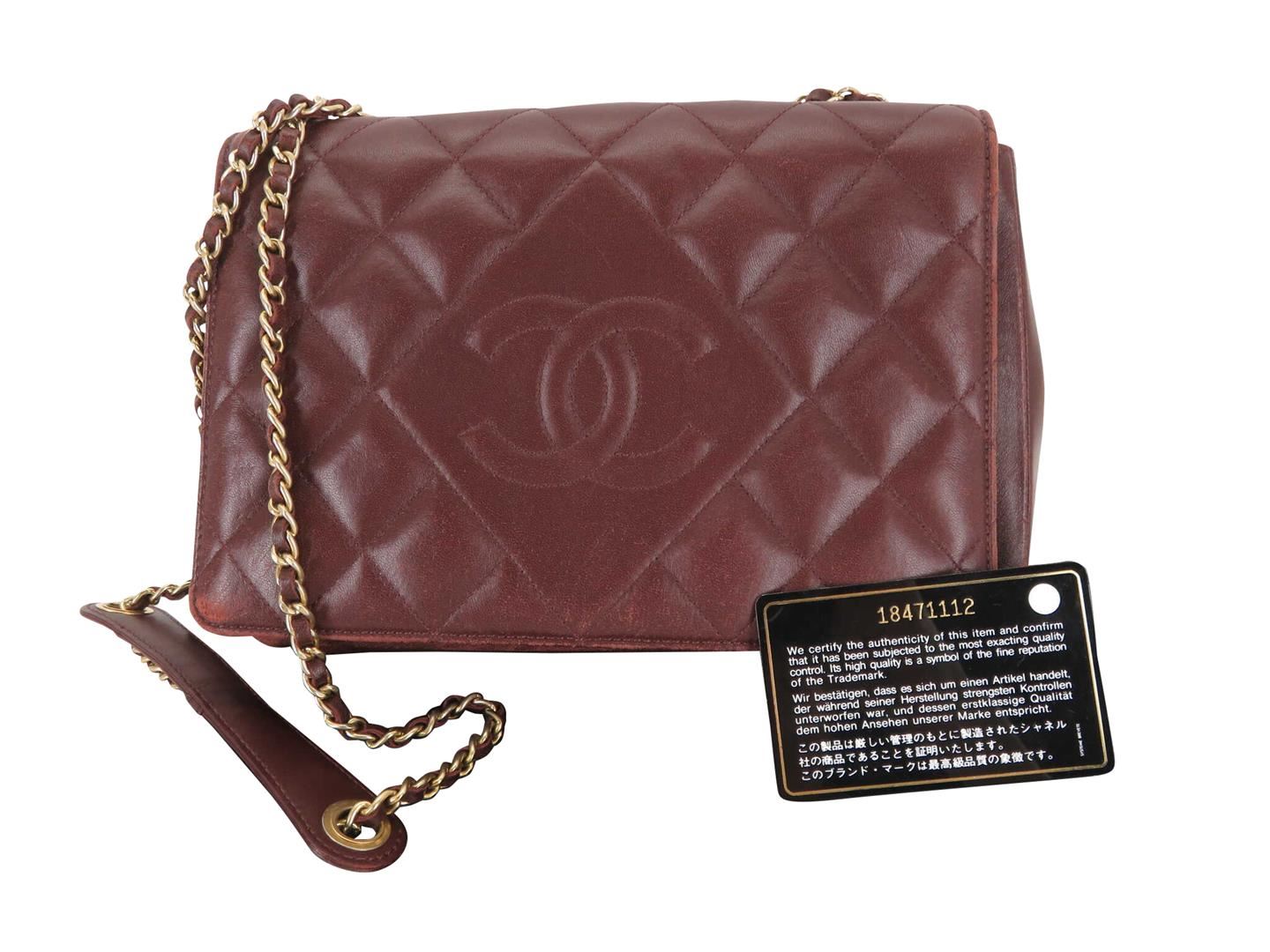 One Chanel Small Diamond CC Full Flap. Item is sold AS-IS. All available information is listed in the description and shown in the photo. Burgundy Lambskin Leather