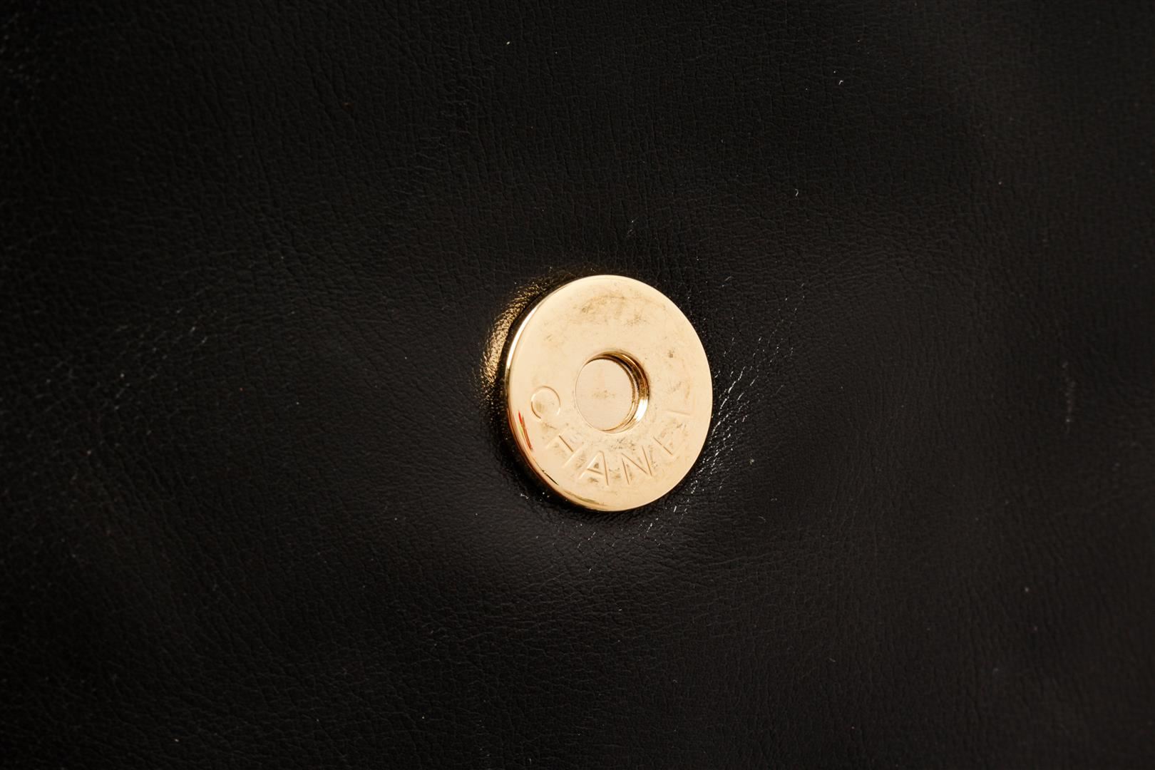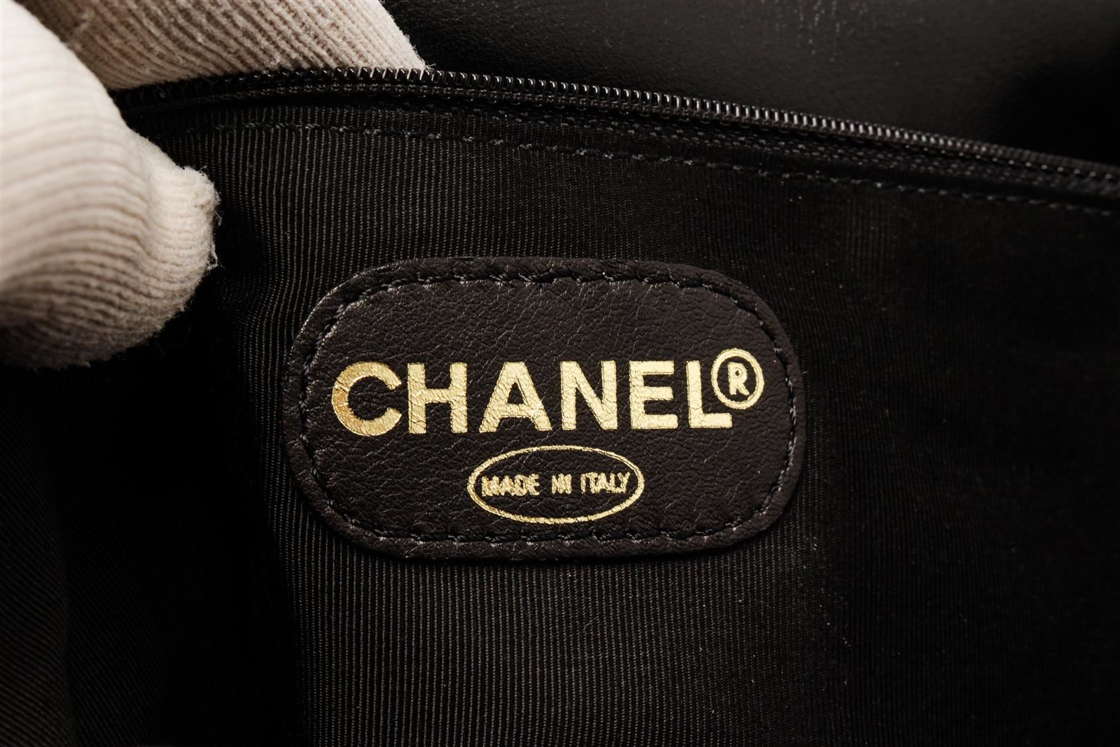 Chanel Vintage Black Leather CC Backpack. All available information is listed in the description and shown in the photos. chanel vintage black leather cc backpack with black, patent leather, diamond quilting, top zip fastening, two leather and chain-link shoulder straps, internal logo patch, internal zip pocket, internal patch pockets, full lining, silver-tone hardware, rectangle body. Depth 5.3 in, Height 13 in, Width 13.4 in / Depth 13.5 cm, Height 33 cm, Width 34 cm