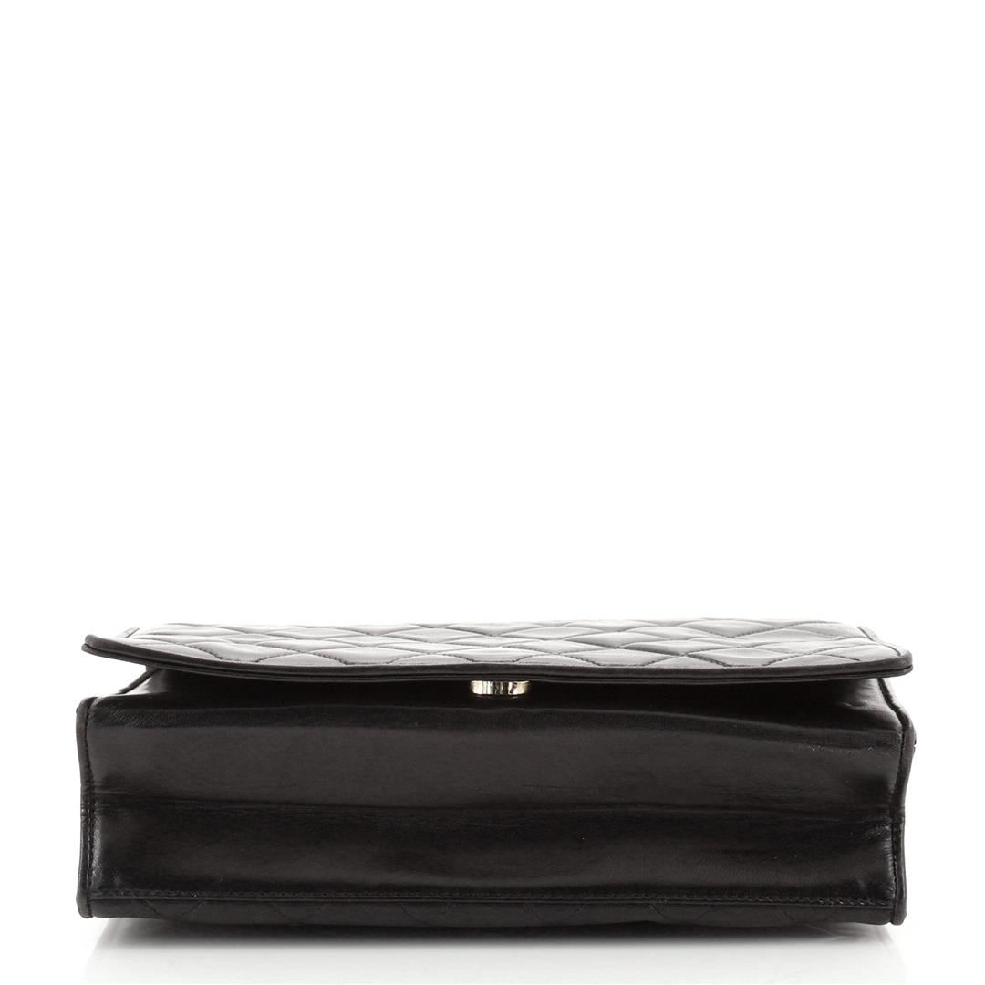 One Chanel Vintage Black Quilted Lambskin Leather CC Full Medium Flap Bag. Item is sold AS-IS. All available information is listed in the description and shown in the photo. Chanel Vintage Black Quilted Lambskin Leather CC Full Medium Flap Bag Condition Details: Odor in interior. Creasing, moderate wear, scuffs and indentations on exterior and underneath flap, heavy wear on exterior and flap edges, moderate wear on strap. Wear and marks in interior, scratches, discoloration and tarnish on hardware. Measurements: Height 7", Width 9", Depth 2.5", Strap Drop 17