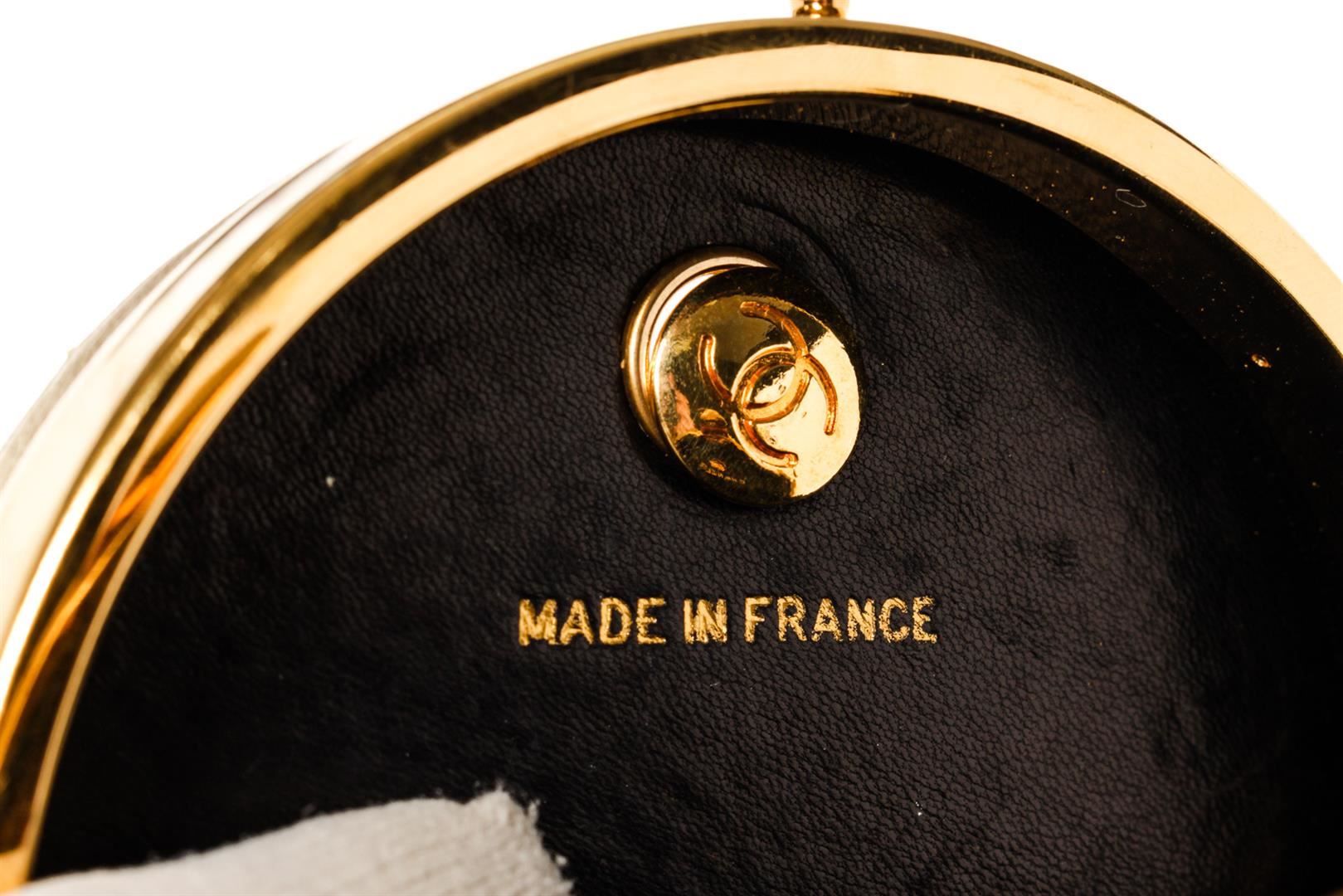 Chanel Vintage Gold Metallic Quilted Leather Frame Mini Clutch Bag. All available information is listed in the description and shown in the photos. Gold metallic quilted leather Chanel Vintage Frame Mini clutch bag with gold-tone hardware, woven chain-link and leather strap, black leather lining and kiss-lock closure at top. Height 5", Width 4.5", Depth 1", Strap Drop 21"
