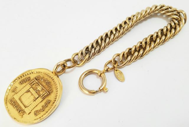 One Chanel Vintage Gold-tone Metal 31 Rue Cambon Paris Round Charm Chain Bracelet. Item is sold AS-IS. All available information is listed in the description and shown in the photo. Chanel Chain bracelet features gold-tone hardware, round 31 Rue Cambon Paris charm, chain-link accent and spring ring closure.