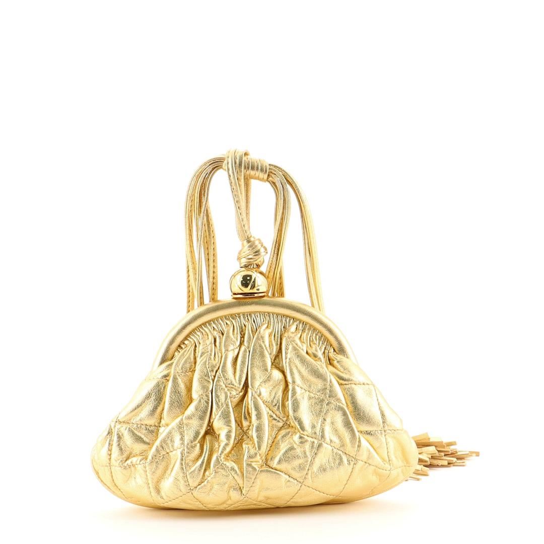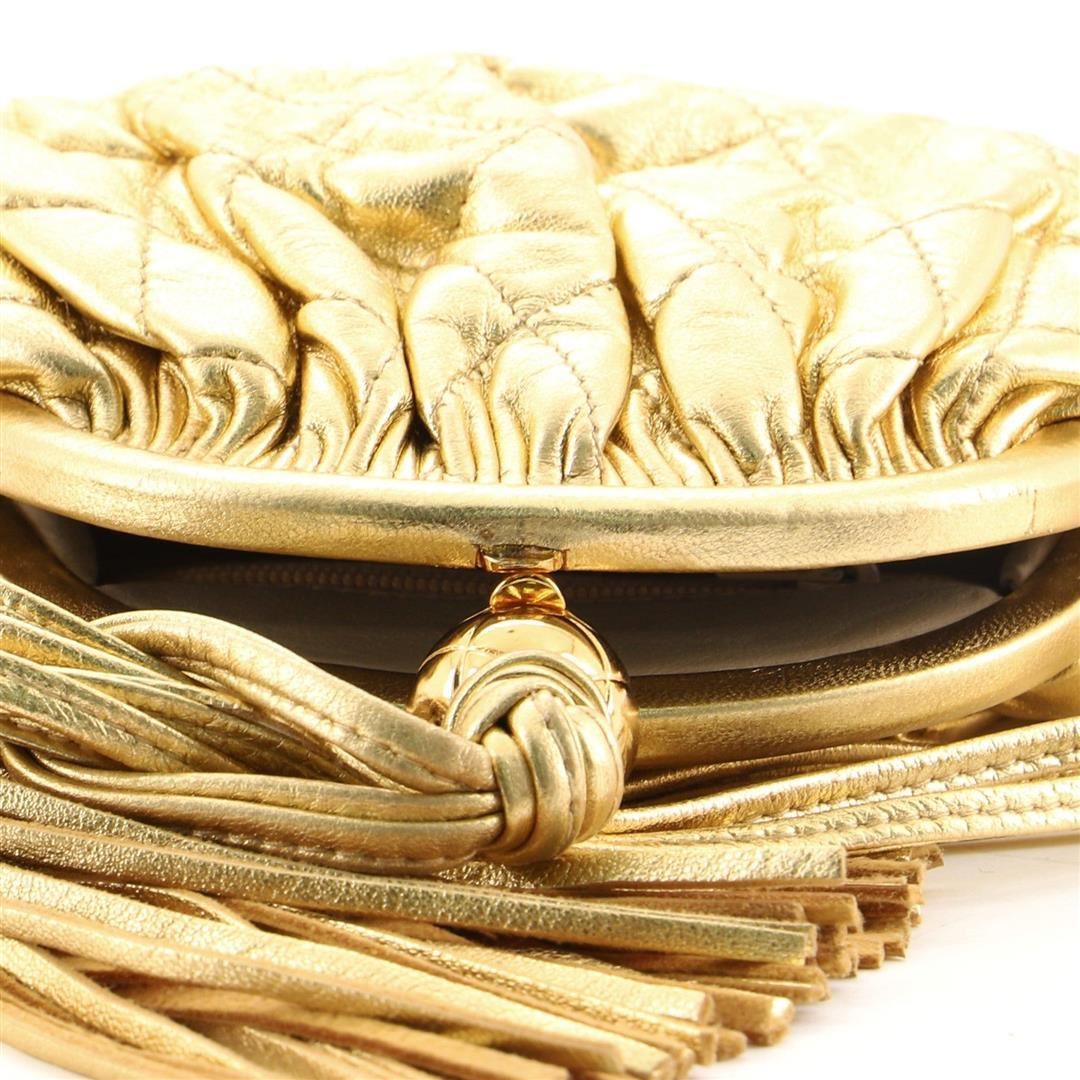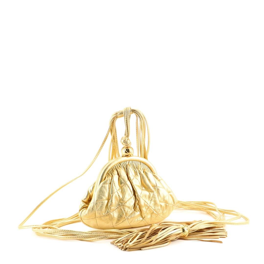 Chanel Vintage Tassel Frame Waist Bag Quilted Leather Small Gold, Metallic