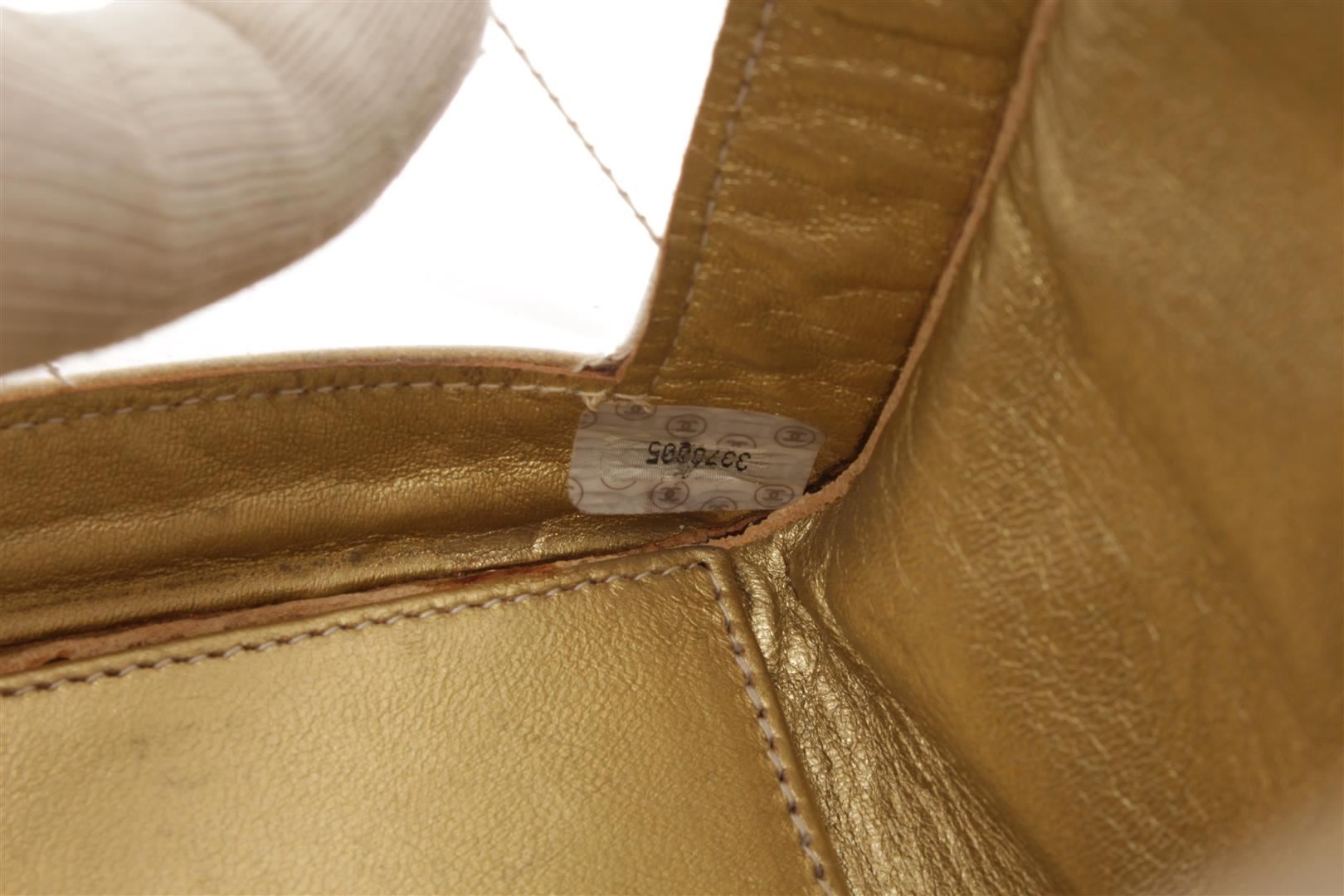 Chanel Vinyl Gold Lambskin Flap Maxi Shoulder Bag. All available information is listed in the description and shown in the photos. Chanel Vinyl Gold Lambskin Flap Maxi Shoulder Bag with leather and chain-link shoulder strap, interlocking cc turn-lock fastening, main compartment, slip pocket to the rear, gold-tone hardware. Depth 3.9 in, Height 9.1 in, Strap 13 in, Width 13.2 in / Depth 10 cm, Height 23 cm, Strap 33 cm, Width 33.5 cm
