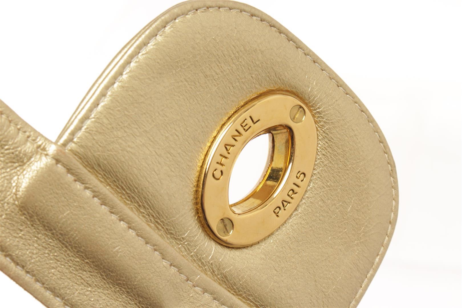 Chanel Vinyl Gold Lambskin Flap Maxi Shoulder Bag. All available information is listed in the description and shown in the photos. Chanel Vinyl Gold Lambskin Flap Maxi Shoulder Bag with leather and chain-link shoulder strap, interlocking cc turn-lock fastening, main compartment, slip pocket to the rear, gold-tone hardware. Depth 3.9 in, Height 9.1 in, Strap 13 in, Width 13.2 in / Depth 10 cm, Height 23 cm, Strap 33 cm, Width 33.5 cm