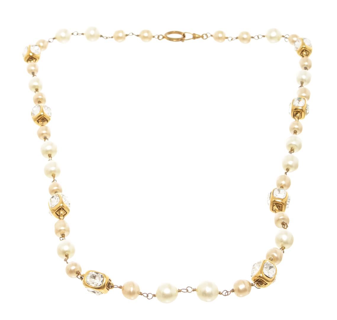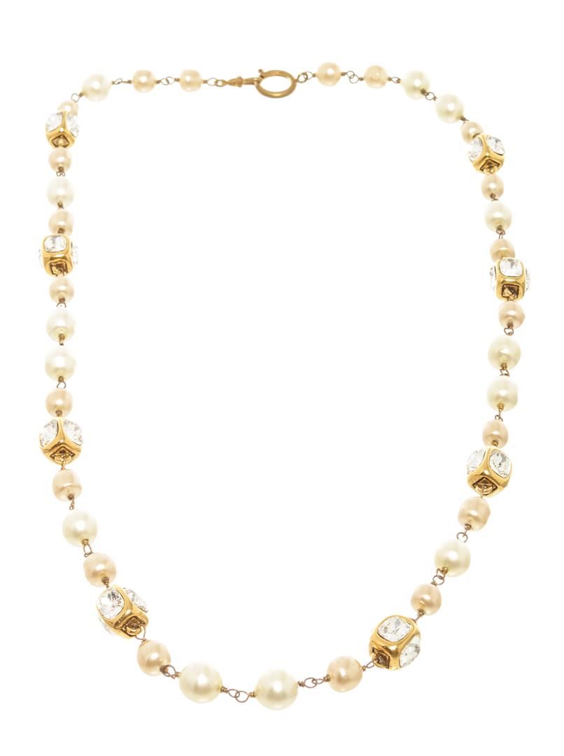 One Chanel White Black Pearl Necklace. Item is sold AS-IS. All available information is listed in the description and shown in the photo. Chanel White Black Pearl Necklace