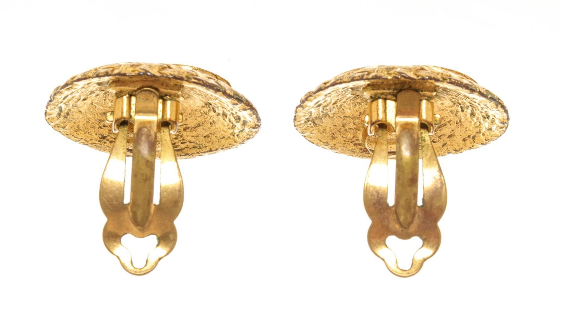 Chanel Woven CC Disk Earrings Earrings Gold Plated Metal. Brand: Chanel, Style: Woven CC Disk Earrings, Type: Earrings, Exterior Color: Gold Plated, Exterior Material: Metal, Closure: Clip-on, Length: 1, Height: 1. Condition: Metal tarnishing. Item is sold AS-IS and all information pertaining to this lot is available in the photos or this description.
