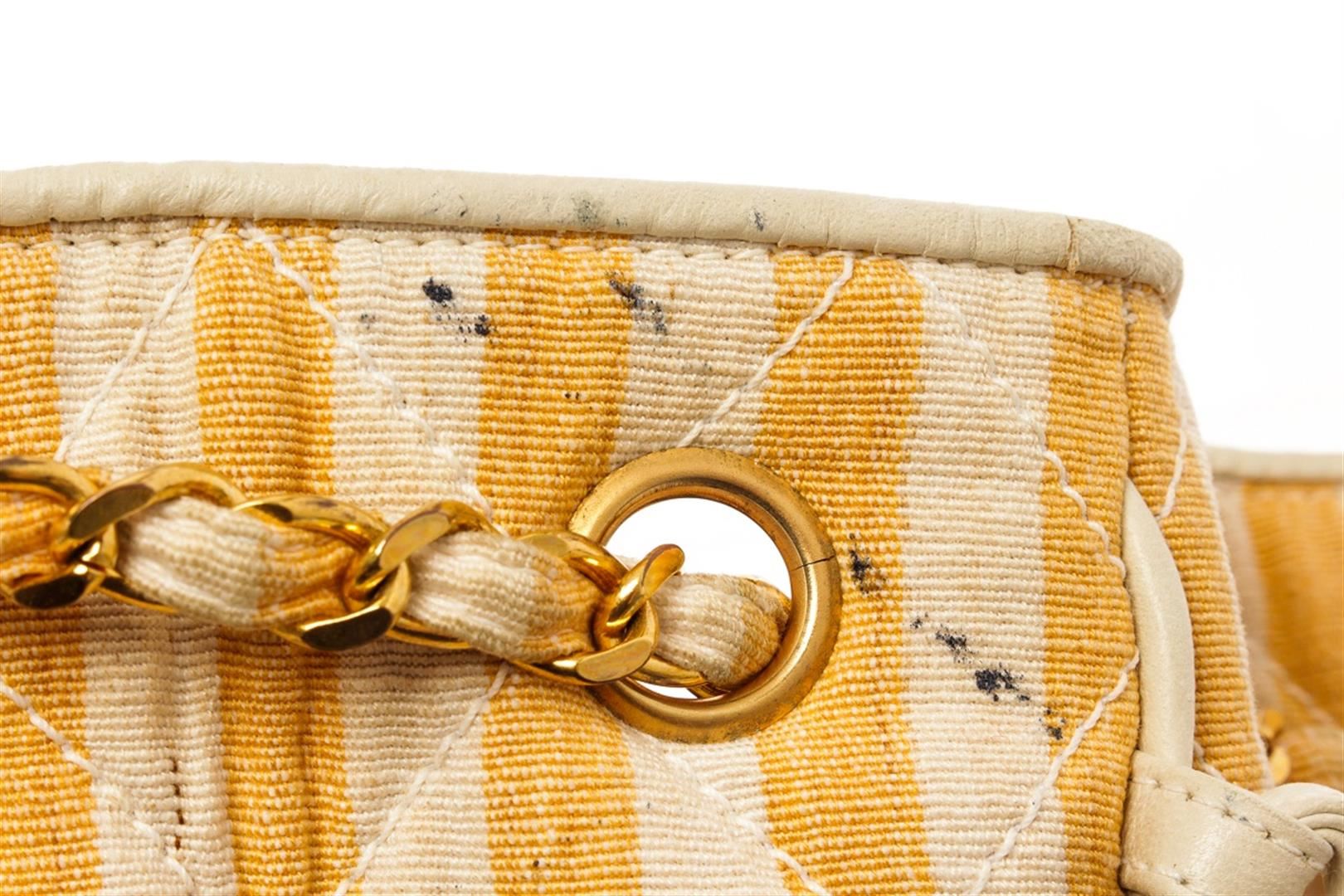 Chanel Yellow Lambskin Leather Matelasse Tote Bag. All available information is listed in the description and shown in the photos. Chanel Yellow Lambskin Leather Matelasse Tote Bag with gold-tone hardware, dual flat shoulder straps with chain, leather trim, single interior zip pocket. Height: 12.40" Width: 12.20" Depth: 6.49", Handle Drop: 17.32" / 31.5 x 31 x 16.5 Cm