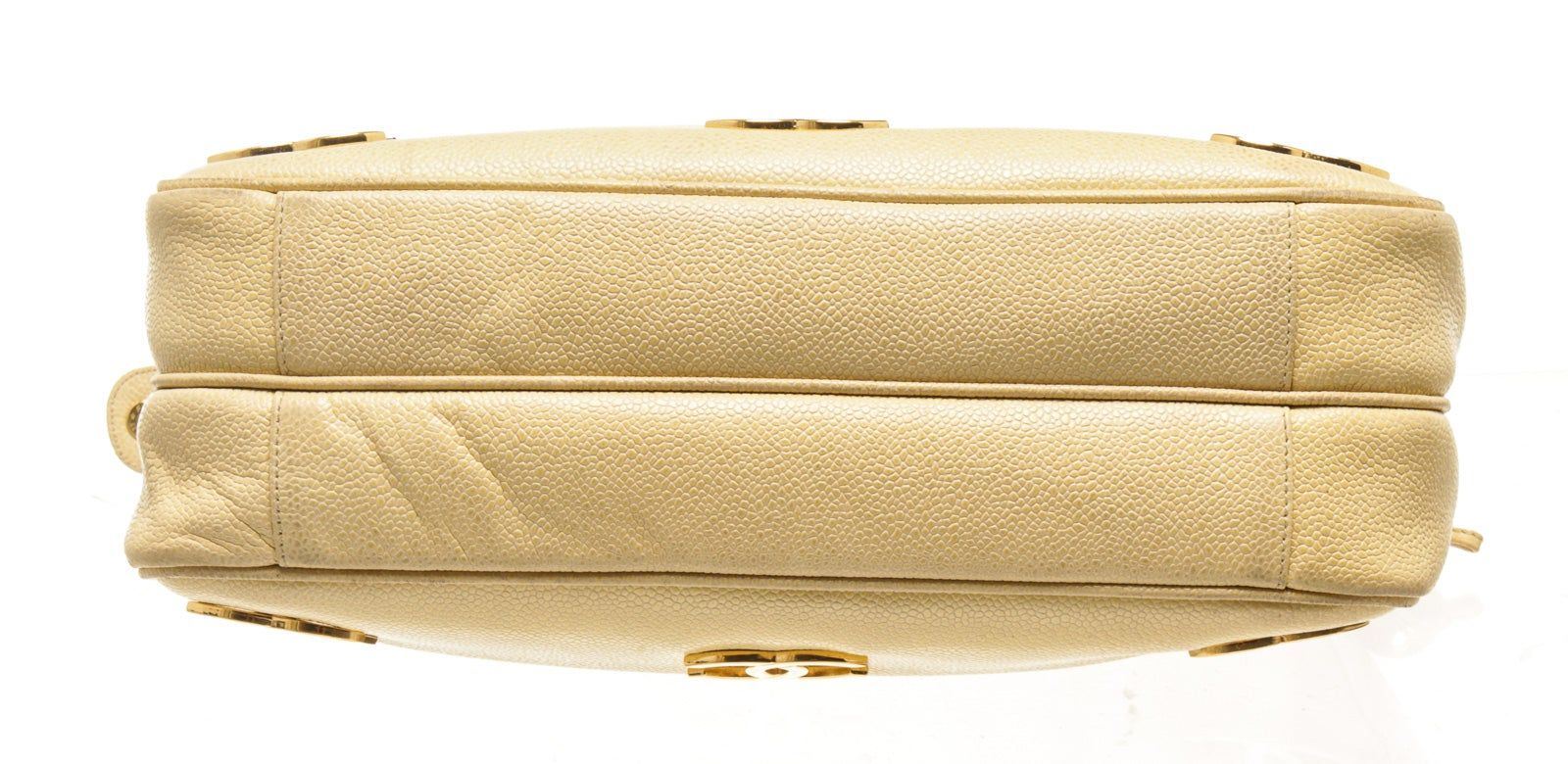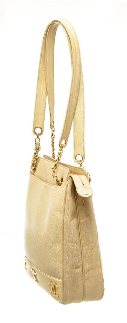 Chanel Yellow Leather Triple CC Shoulder Bag with leather, gold-tone hardware, trim leather, interior zip pocket, shoulder strap and zipper closure.