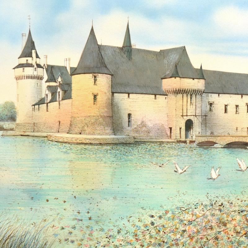"Chateau" is a limited edition lithograph on paper by Rolf Rafflewski, numbered and hand signed by the artist! Measures approx. 29.5" x 21" (border). 27" x 19" (image).