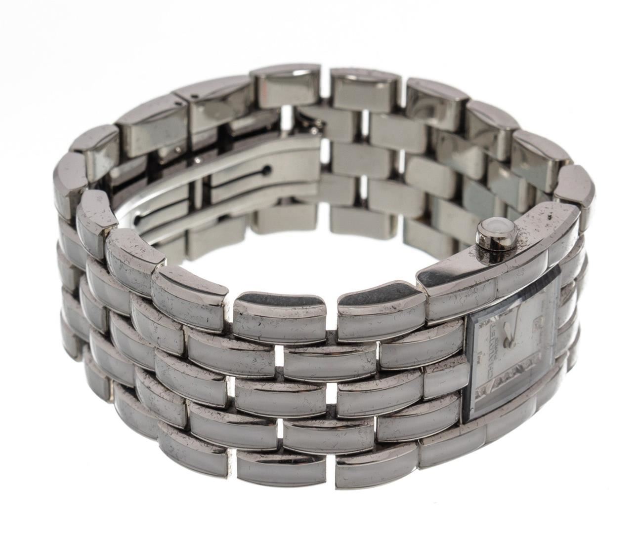One Chaumet White Khesis Quartz Watch. Item is sold AS-IS. All available information is listed in the description and shown in the photo. Chaumet White Khesis Quartz Watch with silver-tone hardware.