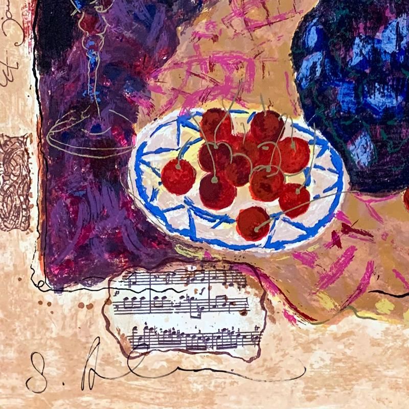 Cherry Bouquet by Alexander & Wissotzky. This is a limited edition serigraph on deckle edged paper by Alexander Galtchansky (1959-2008) and Tanya Wissotzky (1959-2006). It is numbered and hand signed and includes a letter of authenticity. Measures approximately 17.5" x 14" (image).