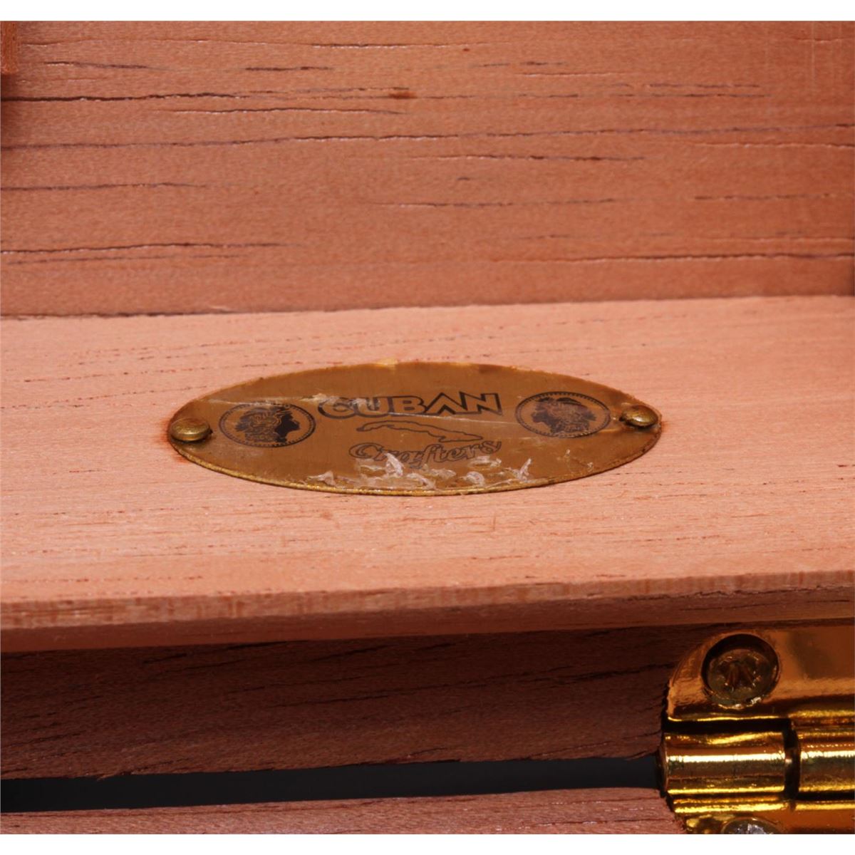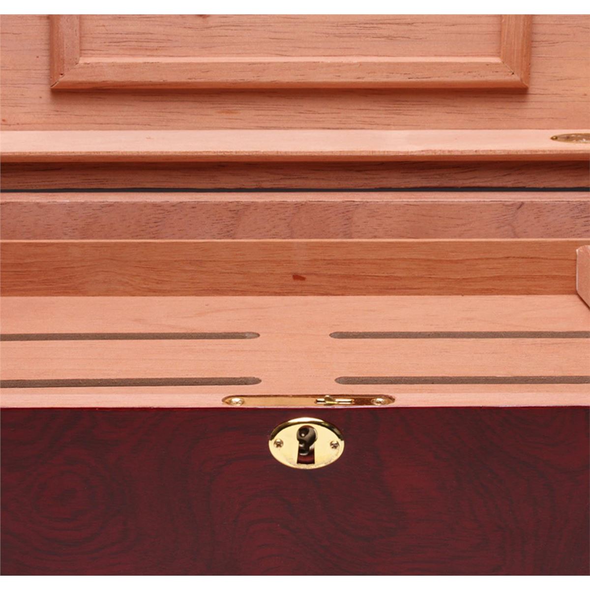 One deluxe cigar humidor featuring a glossy cherry wood exterior lined with premium Spanish cedar and solid brass hardware. Beautifully handcrafted to provide your cigars with the perfect environment for storage. This deluxe humidor will surely enhance your cigars smell and taste. Includes: Humidor, Hygrometer, Humidification System, Accessories, Instructions Manual. Measures 12 x 6 x 9.25 inches.