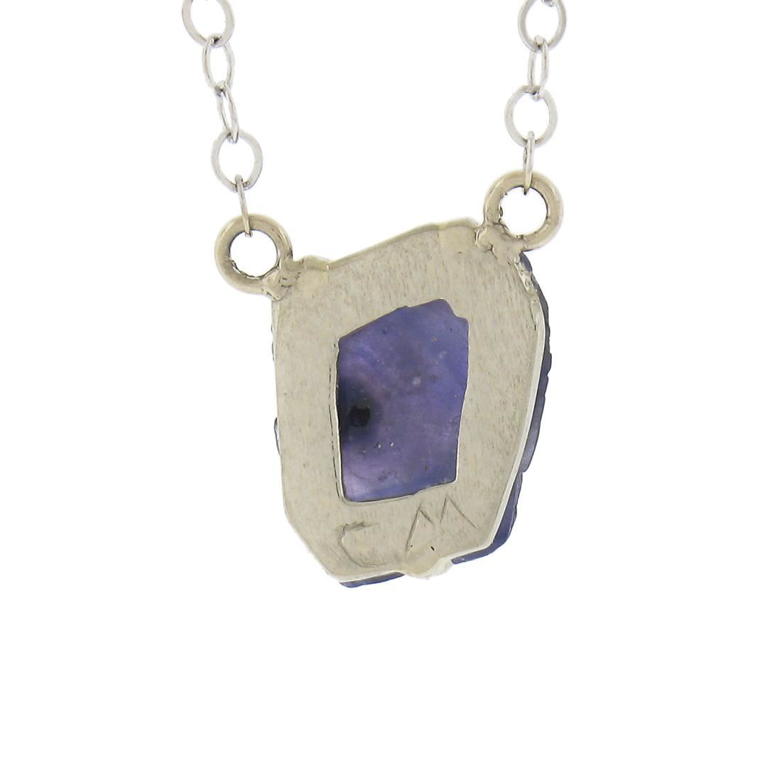 A solid 14k white gold pendant necklace by Chinchar Maloney, featuring 1 uncut natural genuine Iolite or tanzanite (purple - 9.3x8mm). 18 inch cable link chain, 1.91 grams total weight, pendant measures 9.3x8mm.