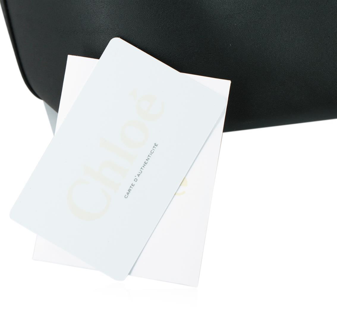 New with tags, Chloe "Baylee" black and gray calfskin shoulder/tote bag featuring: polished pale-gold tone hardware. Lined with fabric; one zip pocket, one card slot and two slip pockets at interior. Rolled top handles; detachable, adjustable shoulder strap. Top two-way-zip closure styled with chain detail. 10" height x 17.0" width x 6.0" depth (approximately). 4" handle drop, 18" maximum strap drop (approximately). Made in Italy. Comes with original Chloe dust bag.