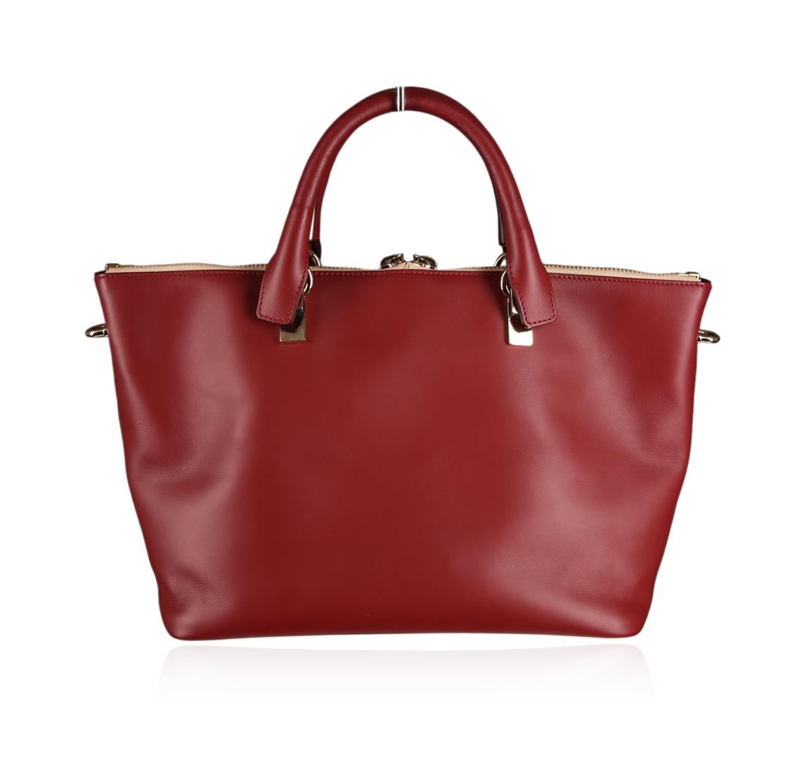 Designer Chloe medium "Baylee" crossbody tote in crimson and fig. New with tags.