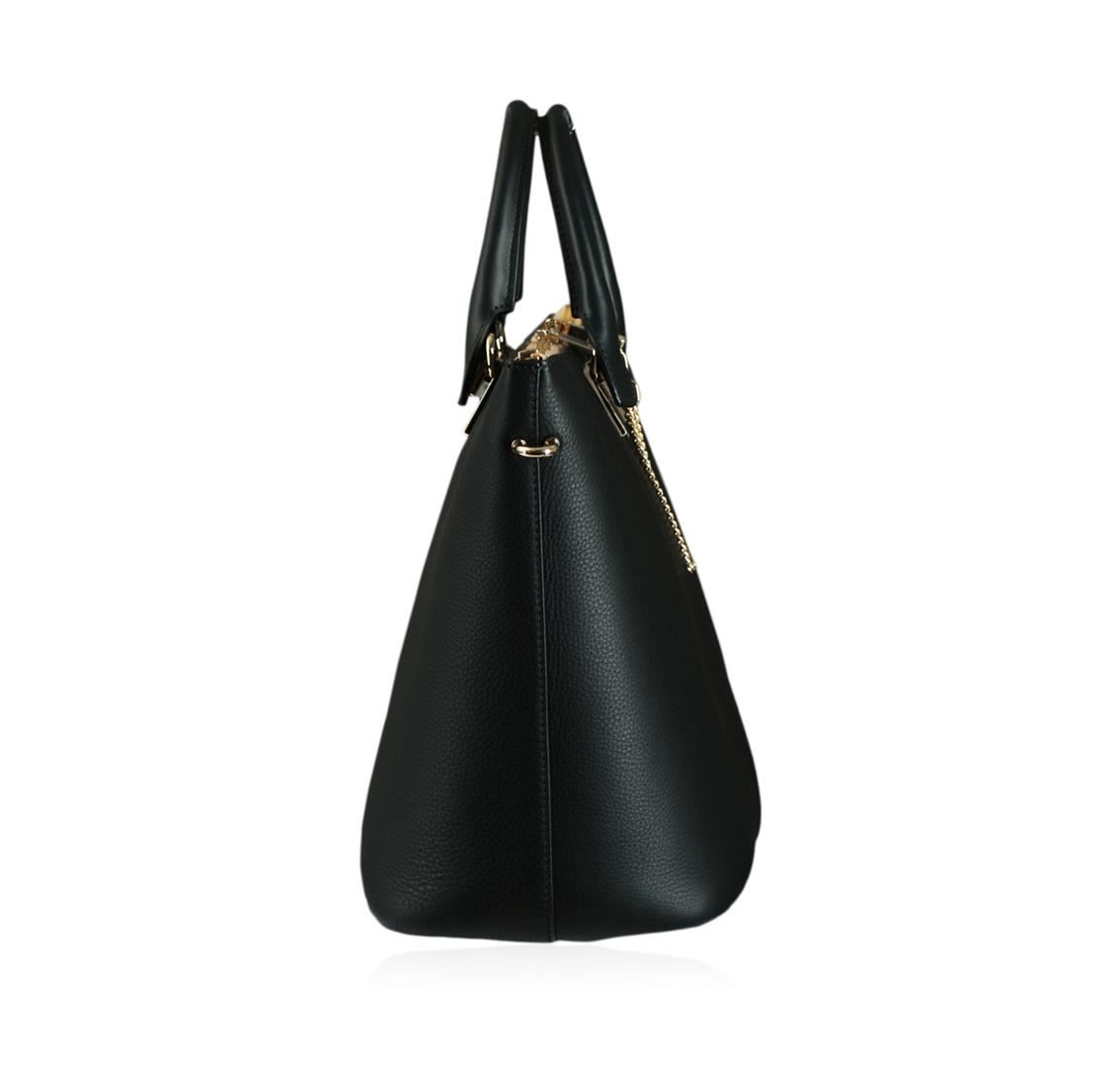 New with tags, Chloe "Baylee" black calfskin tote featuring: polished pale-gold tone hardware. Lined with fabric, one zip pocket, one card slot and two slip pockets at interior. Rolled top handles; detachable, adjustable shoulder strap. Top two-way-zip closure styled with chain detail. 11.5" height x 20.0" width x 6.0" depth (approximately). 4" handle drop, 18" maximum strap drop (approximately). Made in Italy. Comes with original dust bag.