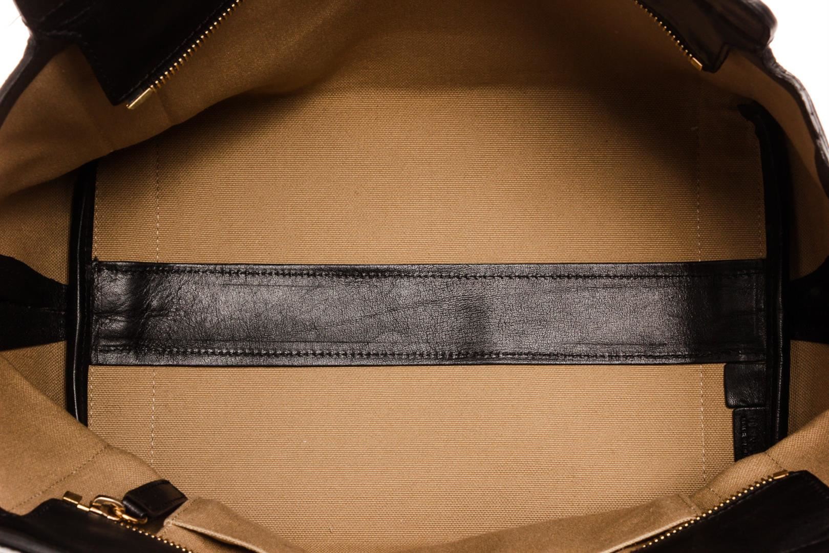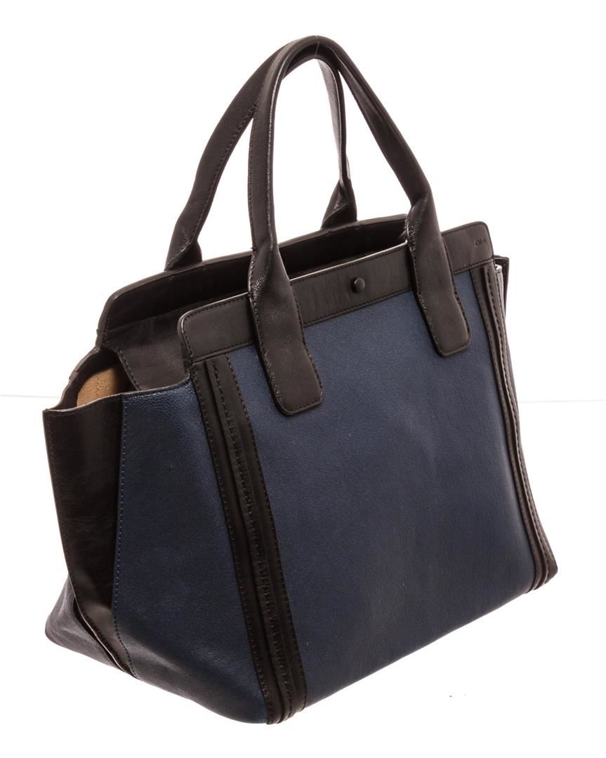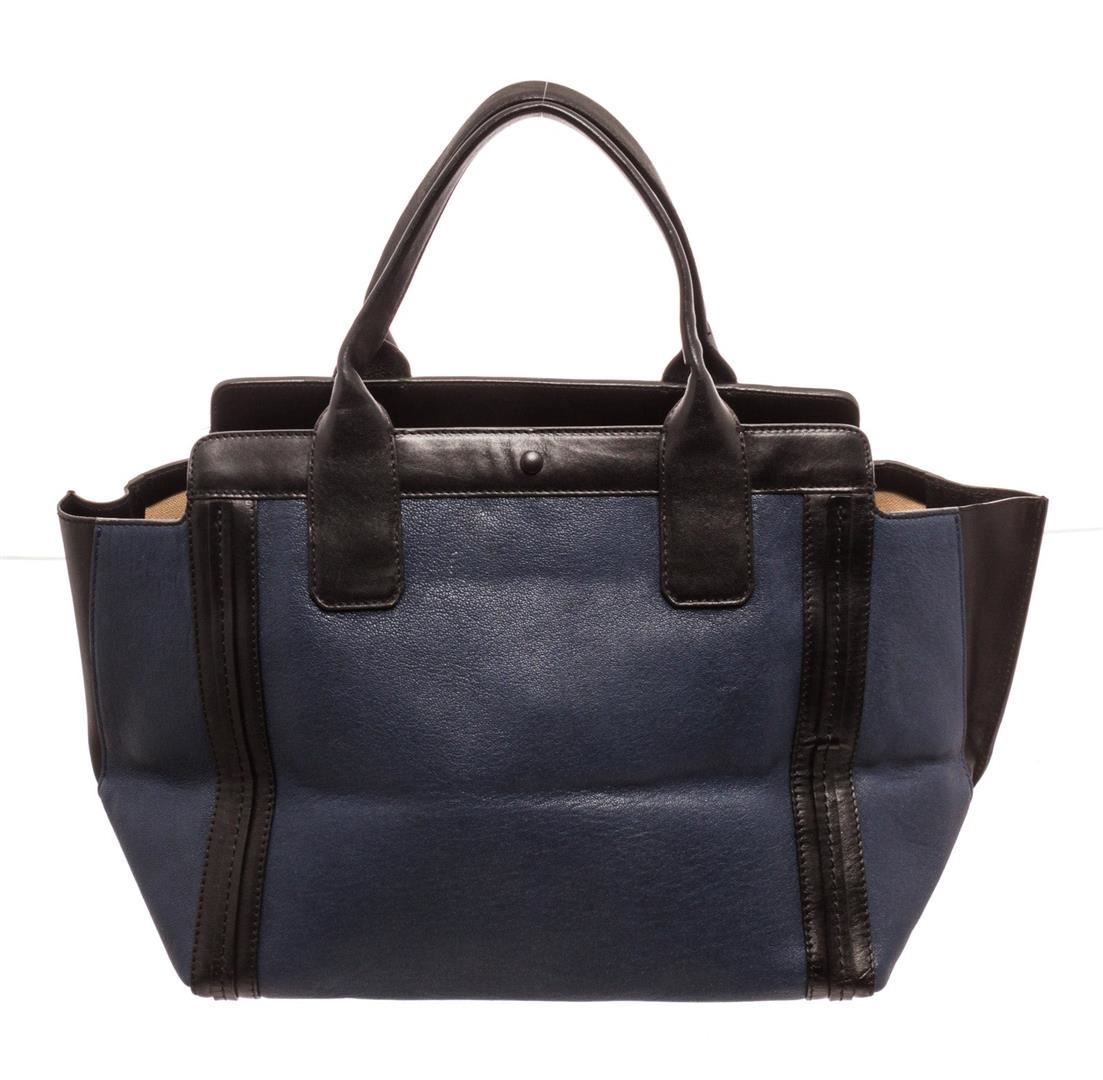 Chloe Black Leather Alison Tote Bag with gold-tone hardware, dual shoulder straps, suede lining single interior pocket, clasp closure at top.