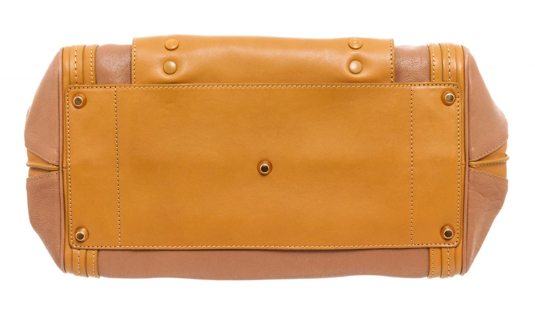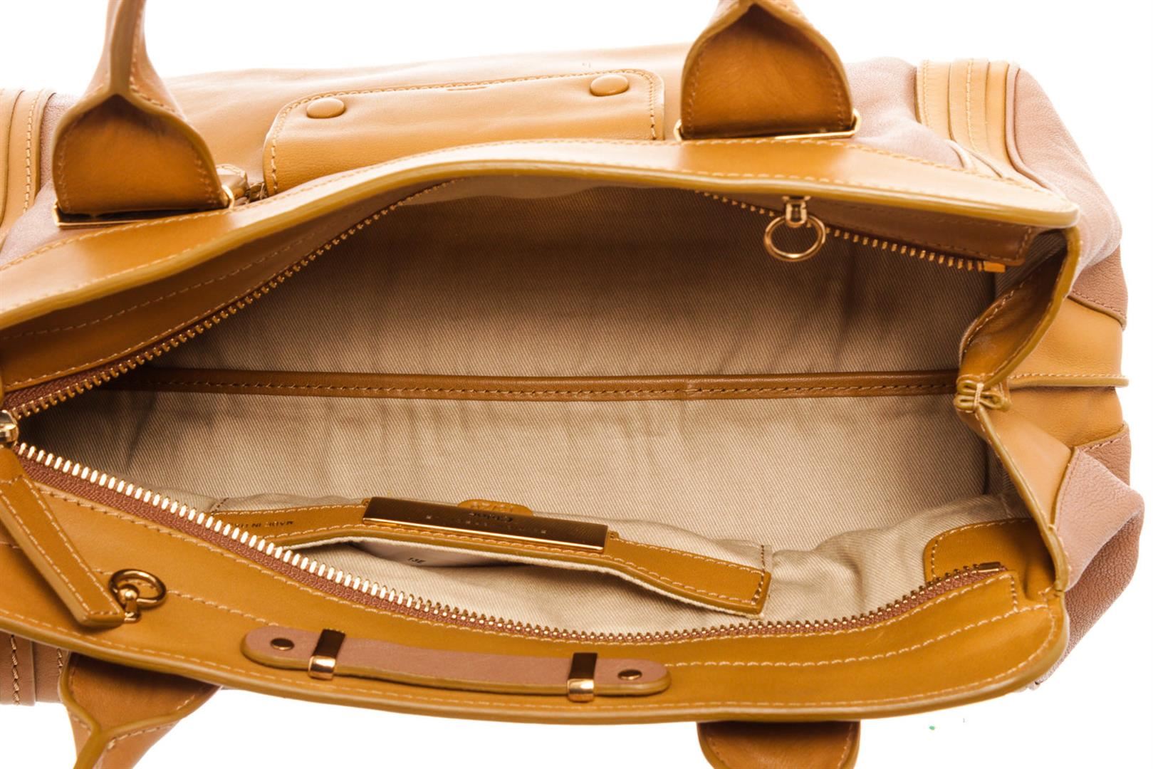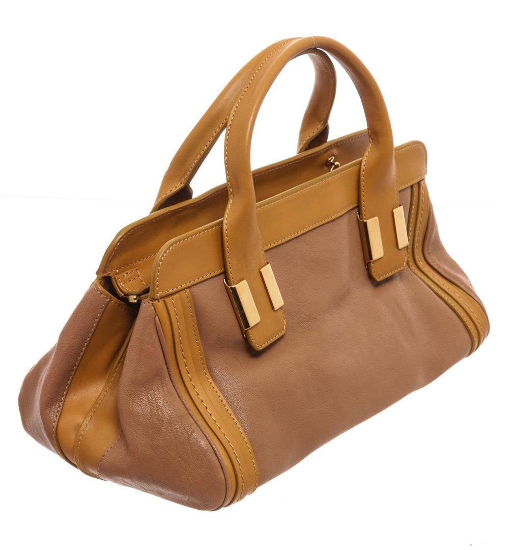 Chloe Brown Leather Alice Shoulder Bag with gold-tone hardware, rolled handles single shoulder strap, dual exterior pockets, twill lining single interior pocket, zip closure.